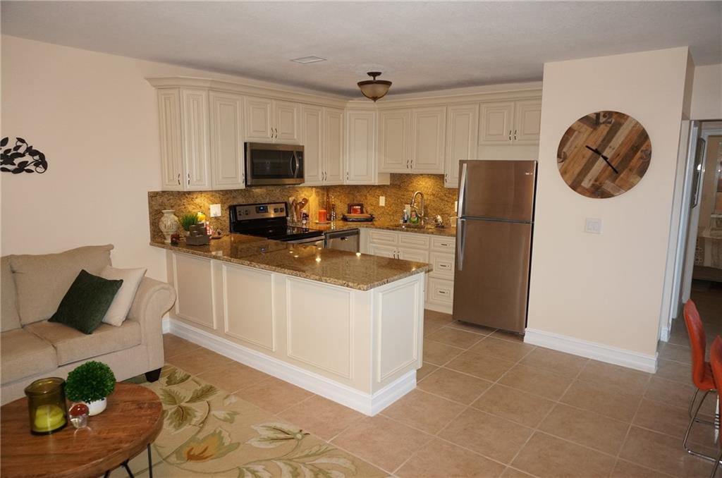 Fully remodeled condo, tile floor throughout the unit, open kitchen, stainless steel appliances granite countertops. Furniture is not included, but it can be negotiated in the price. It is a corner unit and it has central AC.
