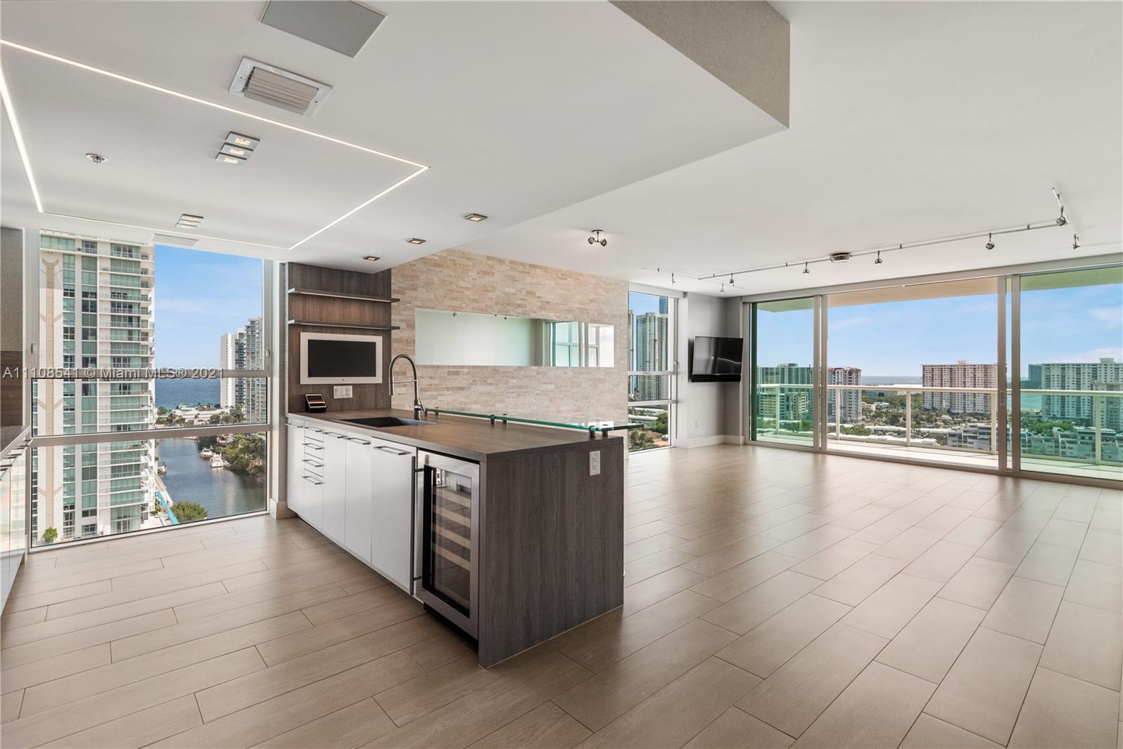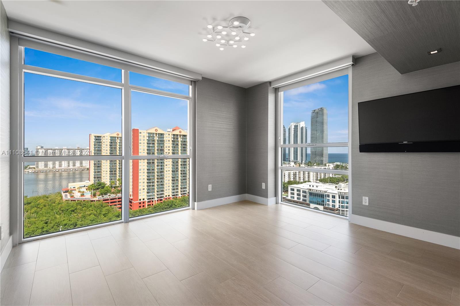 Your search is ended! Enjoy a luxury lifestyle in this Kobi Karp and Chad Oppenheim designed building. A high floor, corner flow through plan has water views in all rooms. The kitchen features extended cabinets, a glass sushi bar with stools and a wine refrigerator. Among the additional extras are electric shades with additional black outs in the bedrooms, Custom closets, designer light fixtures, LED light and surround sound in living/dining, master bedroom and baths. State of the art gym, serenity garden and bar with food service. 2 parking spaces. Wet/dry dock on premises. Pets up to 50 pounds allowed. Immediate rental. Close to the Beach.