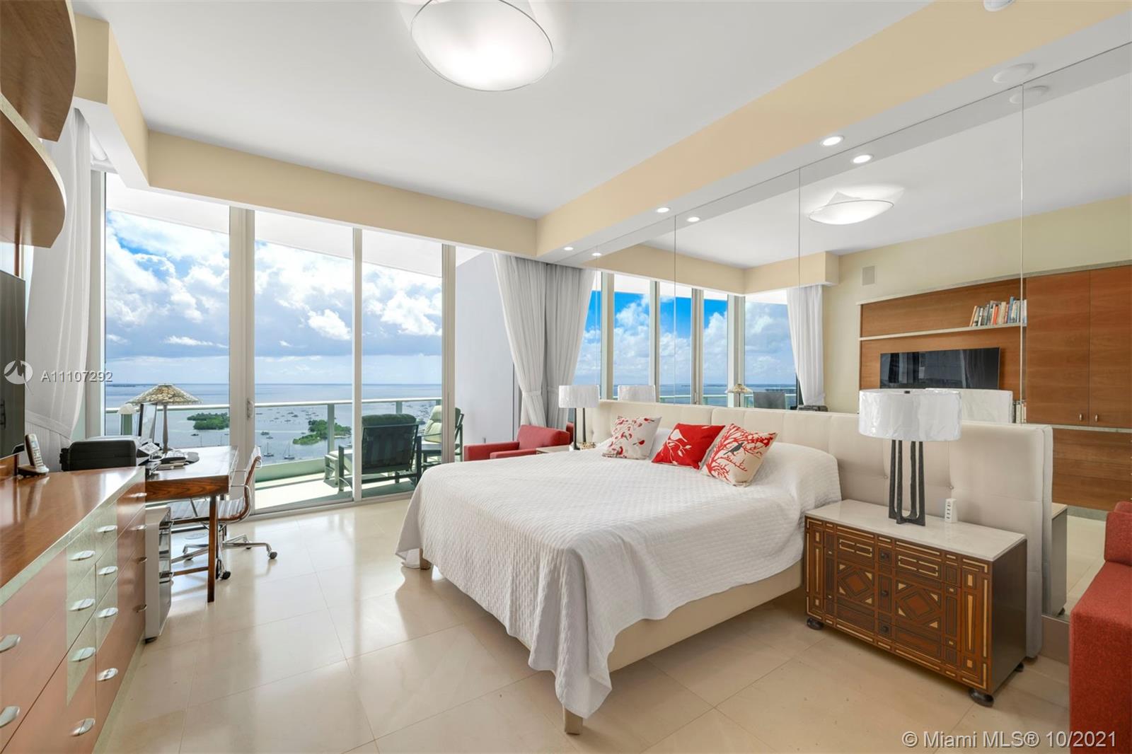 Recently redecorated and stunning 2,640 S.F. residence on the 26th floor of the Grovenor House in Coconut Grove. Just one floor below penthouse level, with the highest ceilings in the building, spectacular views of Biscayne Bay, and seamless indoor living areas bordered by a spacious balcony looking out over the Bay. Expansive windows and glass doors bathe the interiors in natural light. The sleek and stylish kitchen features custom cabinetry by Snaidero, Italian granite countertops and integrated high-end appliances. All three bedrooms have en-suite bathrooms and private balconies, ensuring panoramic views. The main suite bathroom is marble, with double vanities and separate bath and glass-enclosed shower. Exceptional design, views and amenities, close to world-class shopping and dining.