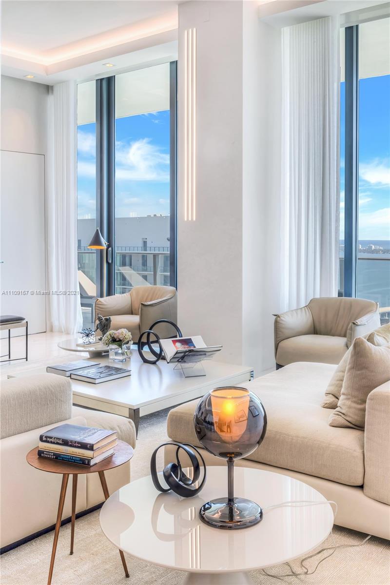 Turn Key Luxury has been re-imagined in this direct bay front sky PH with 12'Ceilings with 2636 SqFt + 428 sqft of terrace luxurious interior and exterior living space.Lavish and meticulously detailed Finely designed.Custom recessed lighting throughout the unit climate controls with digital thermostats motorized drapes & programmed lighting controls Invisibles Italians doors The residence features 2 master suites for a total of 4 Bed+Den/Office 4.5 Bath stunner features private elevator & formal entry outdoor hot tub with views of the Bay and Ocean.Five-star amenities available to residents including Amara Beach Club,Cabanas,Tennis Courts, Library,Wine cellar,Game Room,Spa, Gym,Theater & Business Center.You are steps to Midtown Design District Downtown and only a bridge away from the beach