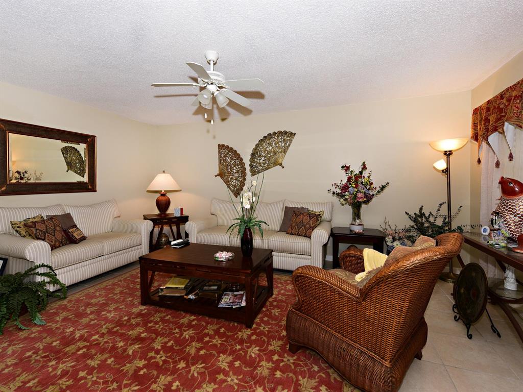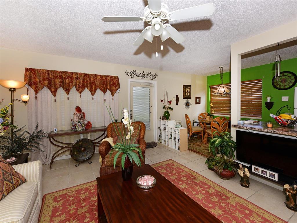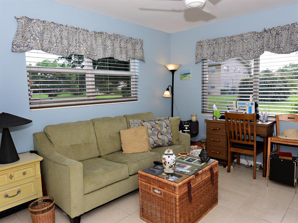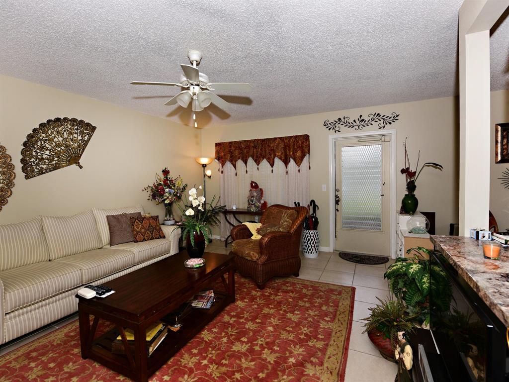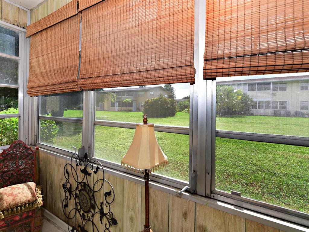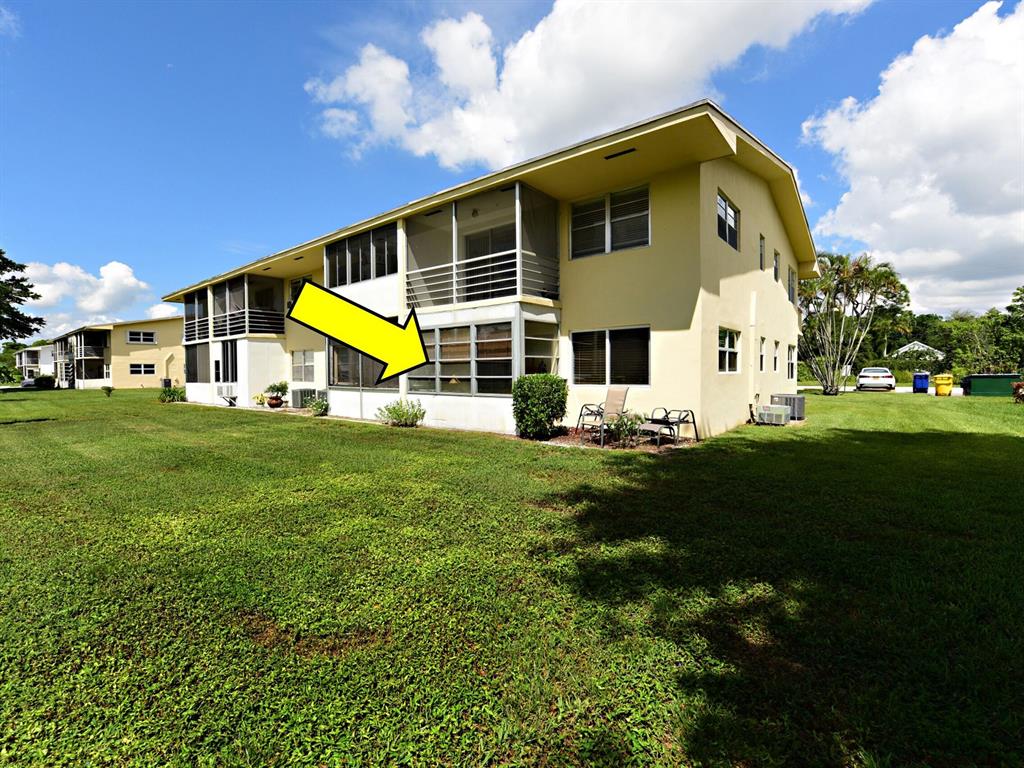 This ground floor, bright, corner 2 bedroom and 1.5 bath condo with tile throughout and a walk in shower. Enclosed patio, Impact windows installed 2019.