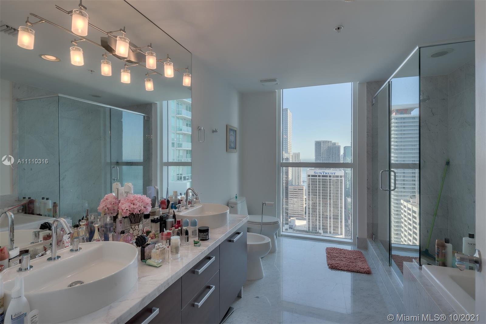 Beautiful panoramic views from this exclusive PH apartment at luxury condominium Vizcayne. Ideal downtown location. Unit currently leased until March 19th 2022 for $4500/month