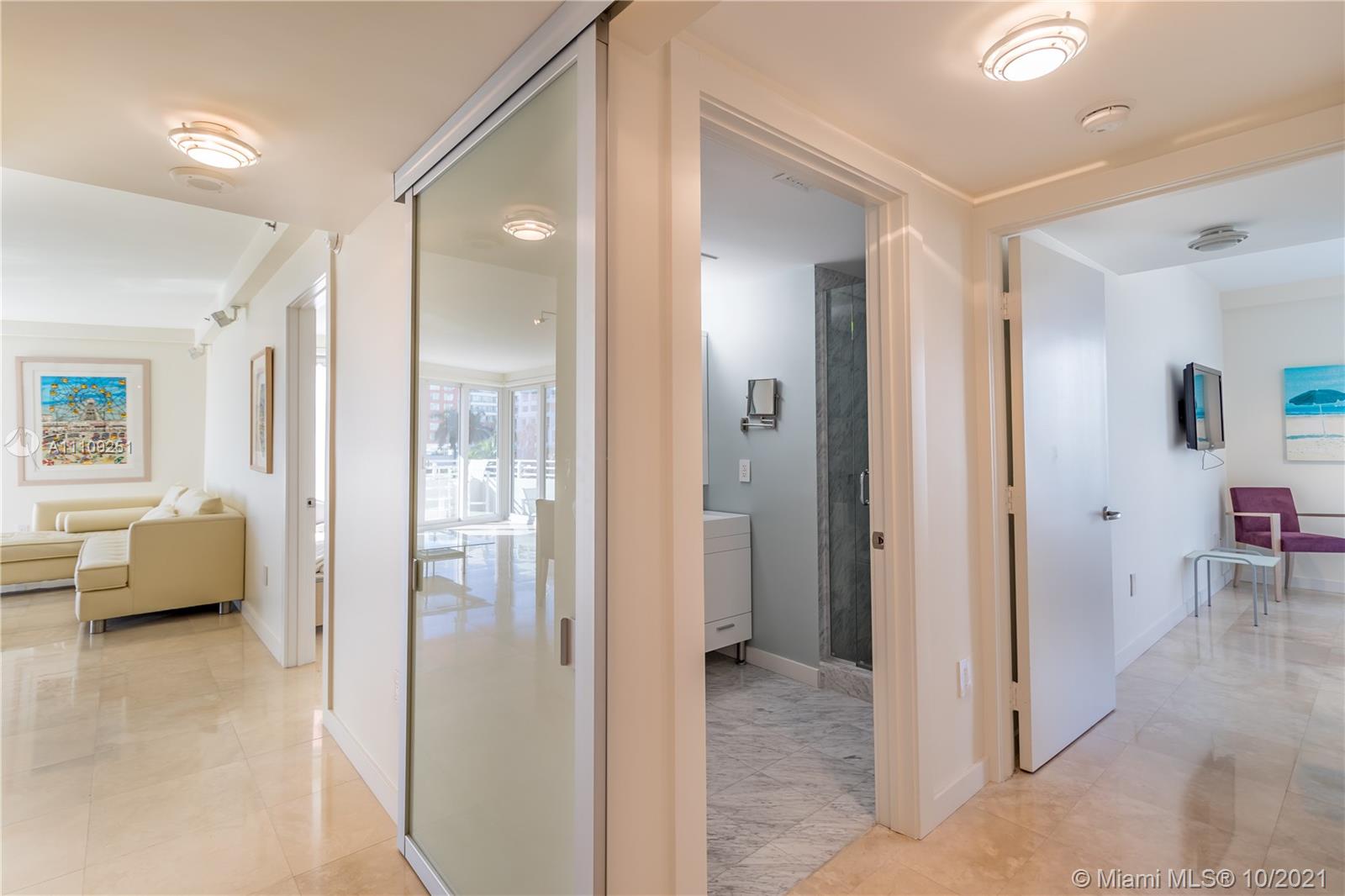 Light flows in from this meticulously maintained corner residence with three exposures to the east, south & west. Two large balconies allow access to the outdoors from every room including both spacious bedrooms & the living area. Features include top of the line kitchen, w/d, marble floors and all new impact windows offering additional security and quiet. A well thought out design allows for complete separation between the two en-suite bedrooms. Directly across from the ocean, this South of Fifth boutique building offers full amenities including 24 hour security, pool, gym, TWO GARAGE PARKING SPACES plus a peek at the ocean with none of the hassle of a big highrise. Offered fully furnished this spectacular residence is ready to move into in time for the fabulous winter season!