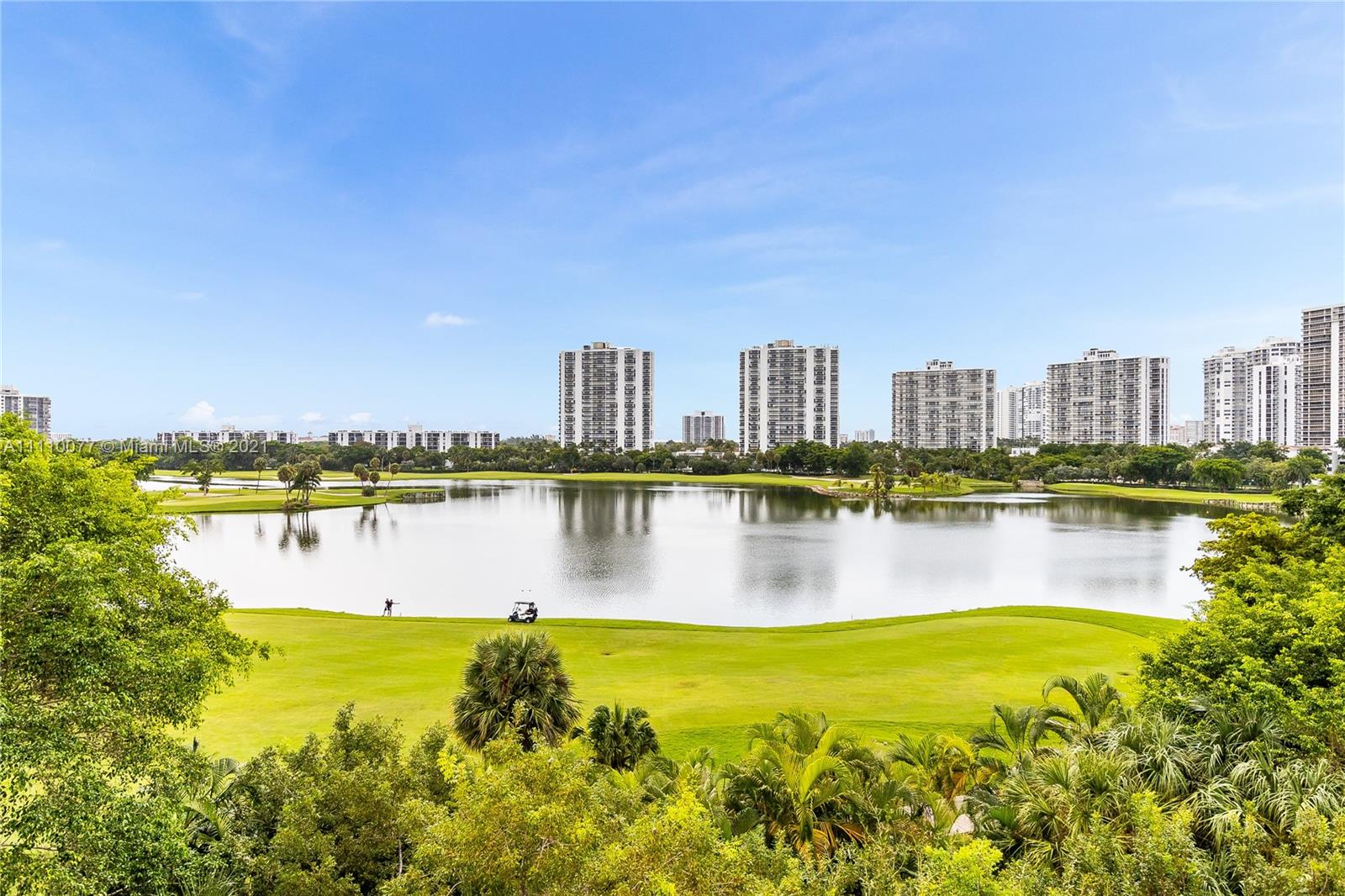 This condo feels like you're living in a house! Incredible open living space with 14ft ceilings and huge windows overlooking lush landscaping with golf course behind it. Spacious patio expands the living space for entertaining. European cabinets with elegant granite countertops and especially long open kitchen counter for seating. Very large bedrooms, walk-in closets, split plan, both with large bathrooms ensuite. Unit is located on ground floor, easy access to the amenities, the lobby, and for walking your dogs. Amazing location on Aventura Circle, walking distance to Aventura Mall, Founders Park, and a drive away to Gulfstream.