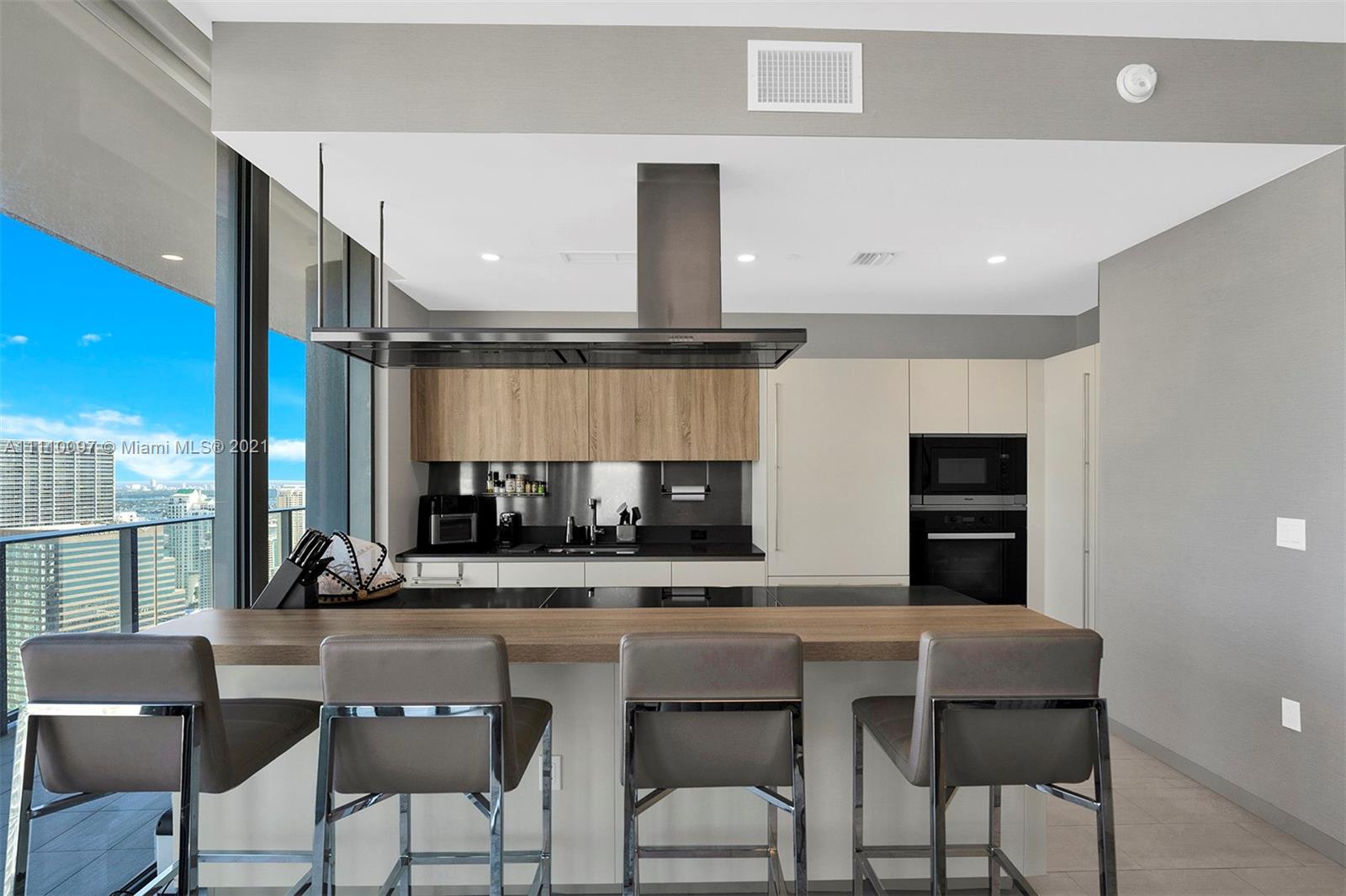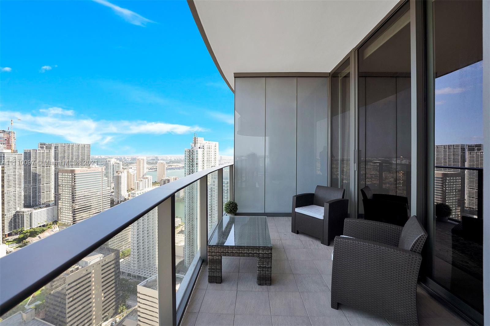 Skyline views from this corner unit at The Brickell Flatiron. 3 beds/3.5 baths with 1,912 SF AC Area plus 601 Terrace, Top of the line Miele Appliances, Snaidero Kitchens & Baths w/ Dornbracht faucets, Italian doors, all electric shade on all rooms, glass enclosed showers and expansive wrap around balconies. Meticulously designed to perfection this unit is move in ready. Flatiron's amenities include the 64th floor rooftop pool with a wellness Center & Spa, and 6,300 sf. gym with a Pilates, yoga, aerobics studio, and a juice bar. Building also includes a lap pool and children’s pool on the 18th floor, a movie theater, billiards and cigar room, wine cellar, and electric car charging stations.this gorgeous building is the ultimate address in town. Unit easy to show!