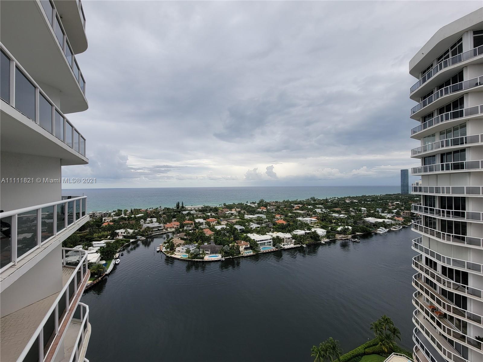 Relax and enjoy in this exclusive, chic and sophisticated waterfront apartment, offer 2,240sf of luxury living space. Spectacular 360 degree panoramic ocean and city views from every window and balcony of this 2/3 unit with marble floors (Den can easily converted in a third bedroom). Private elevator with grand entry. Natural light with ocean views from all rooms. Large laundry room. Resort style, 2 swimming pools, gym, tennis courts . Two covered parking spaces and valet. Great security and location in this prestige complex. Walking distance to Waterways shops, close to Aventura mall. Unit has hurricane shutters. A+ Schools.