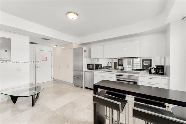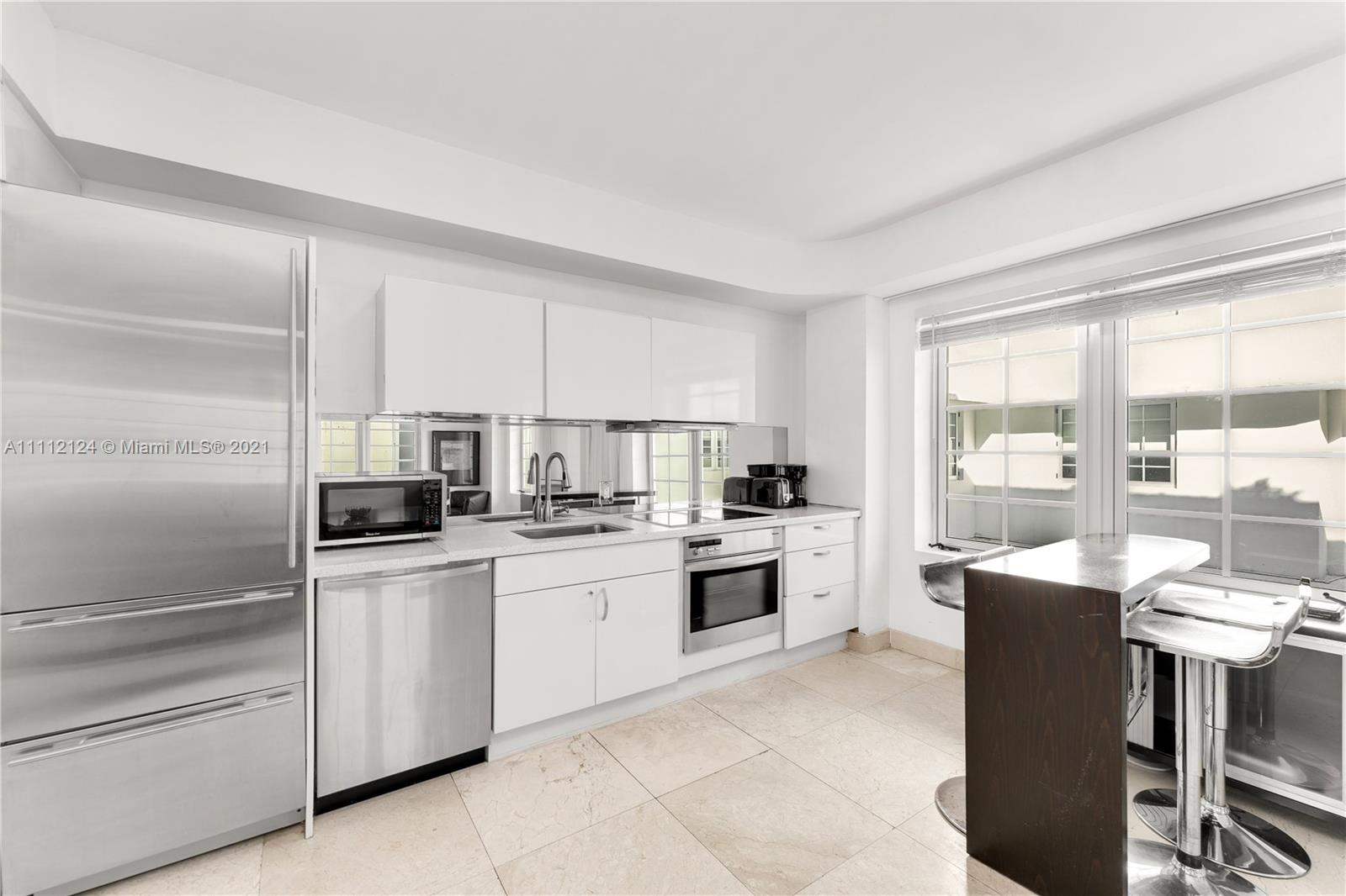 Investor-friendly building that allows daily rentals on the iconic Ocean Drive in Miami Beach. This 1 bedroom could be converted into a 2 bedroom to increase revenue. Desirable corner unit flooded with natural light and ocean views from the living areas. Washer/dryer in unit, double vanity in master bath with large soaking tub and massive shower. Marble floors sprawl through-out the 1,046 sf suite, stainless steel appliances in kitchen, concierge service staff on site 24/7. Own a piece of Miami history at The Carlyle; has been featured in films: Scarface, The Birdcage, Bad Boys 2, Random Hearts and Pronto!