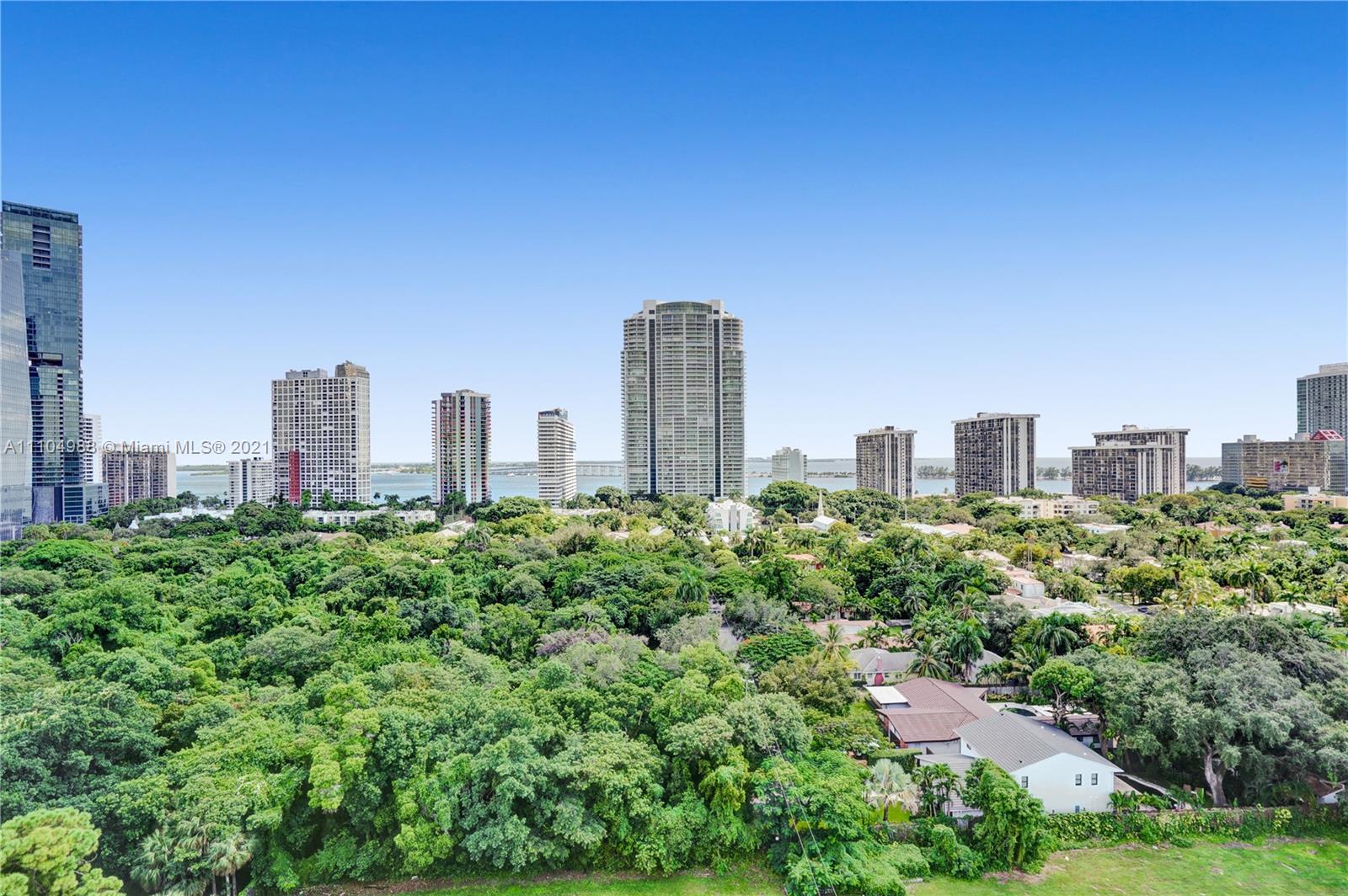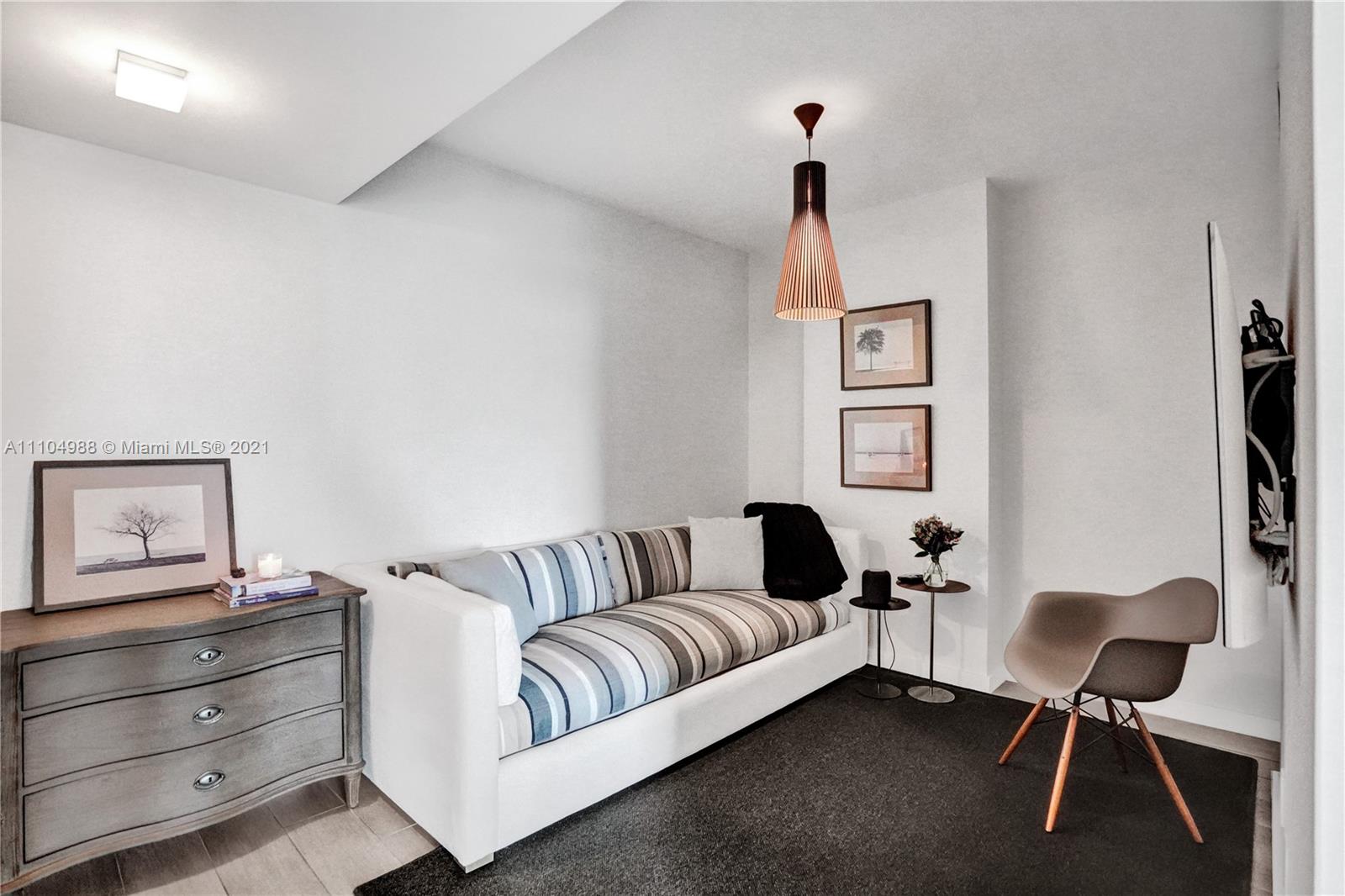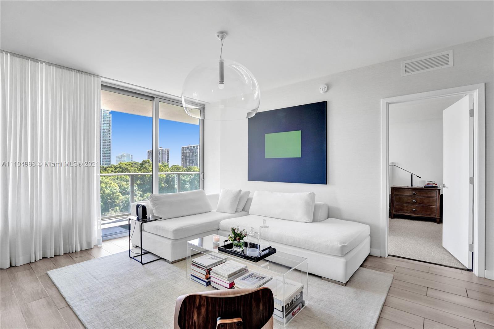 Corner unit designed to perfection by Icreate Design Studio. Open kitchen facing living and dining area, perfect layout looking at Simpson Park's gorgeous trees and buildings skyline at far. Designer wall coverings in the living area and den. Lining linen sheers in the living room. Master bedroom has motorized roller blackout and shade and 2 comfortable closets. Master bath with 2 sinks and shower with glass door. The second bedroom is used as an office, also with roller black-out and roller shade. The second bathroom also serves as a powder room and shower with glass door. Ceramic flooring in the living areas and carpet in both bedrooms. Washer and dryer. AC unit conveniently located in the hallway. Boutique building with excellent location and amenities.