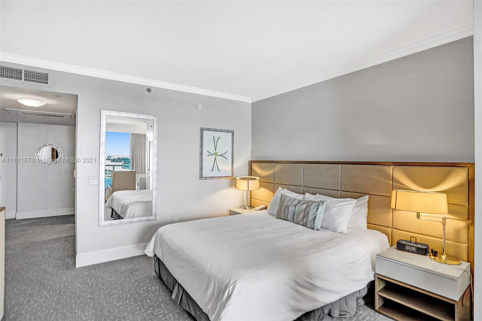 Beautiful Jr Suite w/ocean, bay & city views at Fontainebleau II. Enjoy full service, vacation-style living in a furnished turnkey unit with ample closet space and balcony. This unit comfortably sleeps four with a king bed, living area with sleeper sofa and kitchenette. Enroll in hotel rental program & receive income while away! The Fontainebleau Resort offers luxury amenities on 22 oceanfront acres including award-winning restaurants, LIV night club, Lapis spa & state-of-the-art fitness center. Maintenance includes: AC, local calls, electricity, valet + daily free breakfast in the owner’s lounge.