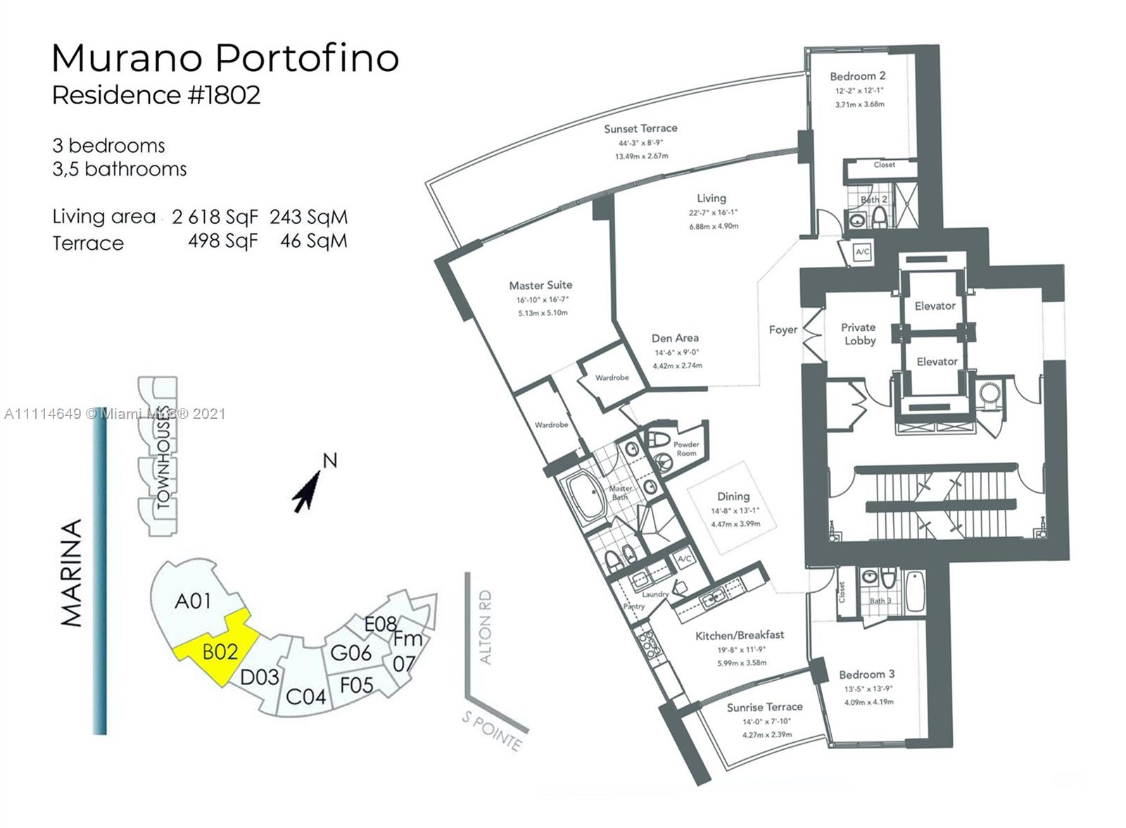 Live in the coveted “02” line at Murano Portofino, located South of Fifth, Miami Beach's most prestigious address. Breathtaking Downtown views, Sweeping Ocean views and Stunning Sunsets! An endless sparkling horizon overlooking the Miami Beach Marina. One of the largest 3BR floor plans South of Fifth - 2,618 SF. A true entertainer’s dream with a wide-open layout and Sunrise & Sunset Terraces. The ultimate entertainer’s wet bar - perfect for sunset cocktails! Custom Italian upgrades from head to toe. 3 spacious bedrooms w/ en-suite bathrooms, large master, formal dining, custom built-ins, electric shades & a stainless steel kitchen with an Ocean View! 5-star amenities including Murano’s private beach club and restaurant, impressive two-story gym, and 24-hr valet. The ONLY 02-line available!