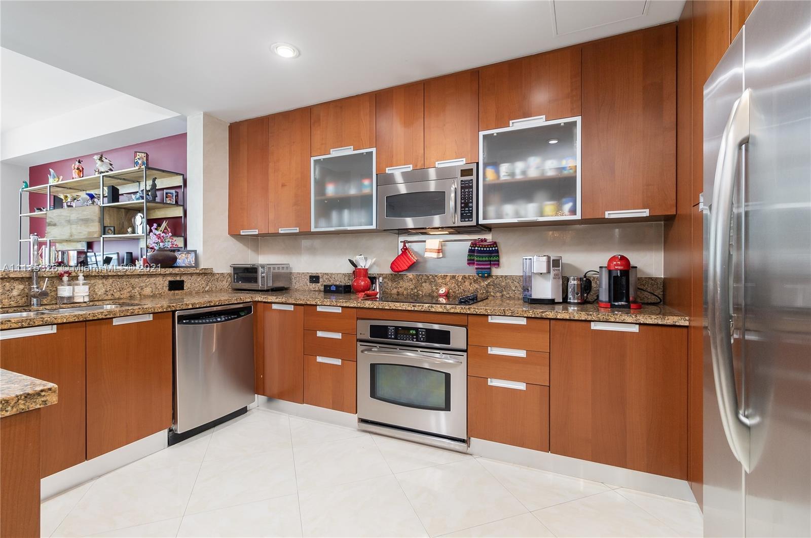 Enjoy amazing sunsets from this desired corner unit with panoramic views from every room. Upgraded with imported floors, quartz countertops, and high-end appliances. Perfect layout for entertaining with an open living concept. The unit features 9" floor-to-ceiling sliding impact windows, open den, an expansive kitchen with plenty of pantry/storage space, and 2 spacious covered parking spaces. The building includes a pool overlooking the bay, exercise room with Miami Skyline views, a billiard/social area, and additional storage. Centrally located in the heart of North Bay Village, close to restaurants, supermarkets, and minutes away from Biscayne and Miami Beach. High-speed internet and cable included. Fully renovated building, $40K assessment paid off by Sellers. Less than $330 per SqFt.