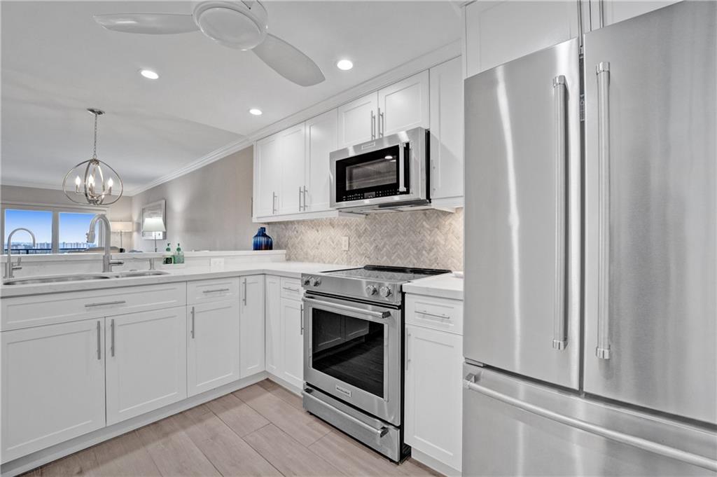 Beautifully renovated, gorgeous 2BD/2BA condo on the sand in Lauderdale By The Sea! High-end modern finishes, wood plank floor tiles, crown molding, updated bathrooms and a fabulous kitchen with quartz counters and stainless steel appliances, sold turn-key. High floor with large open balcony has NE views of the ocean and SW views of the city, Intracoastal and stunning sunsets. There is a washer/dryer in unit, a storage room on the floor and one covered parking space. Leisure Towers is directly on the sand and offers private beach access, heated pool, shuffleboard and an entertainment room. Close to shops, restaurants and nightlife. Enjoy Florida living with the beach and ocean in your backyard! Rental Income Jan 1-April 15, 2022.