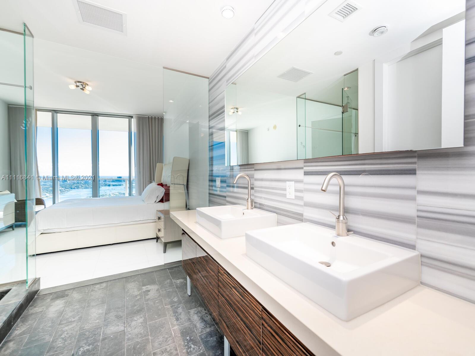 Amazing unit 2 bedrooms, 2.5 bathrooms, living in luxury at Marquis Residences in the heart of Miami’s exciting downtown. . Relax and enjoy the oversized glass balcony, wood European kitchen cabinetry, luxury kitchen appliances, quartz countertops, private elevator foyer. High impact windows. Enjoy the direct water views from your spacious terrace. Amenities include two pools, spa and fitness center, valet, and 24/7 doorman security., cabanas, private access lobby bar. Walk to the PAMM, Frost Science Museum, American Airlines Arena, and beautiful Museum Park. PLEASE MUST USE SHOWING TIME FOR APPOINTMENT. All Realtors MUST accompany their buyers for showings.Buyer’s Agent is responsible for contacting the HOA or Condo Assn