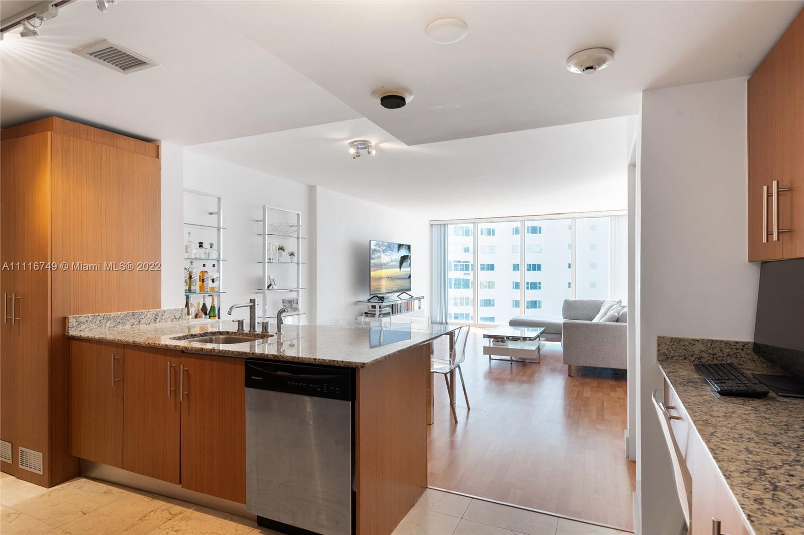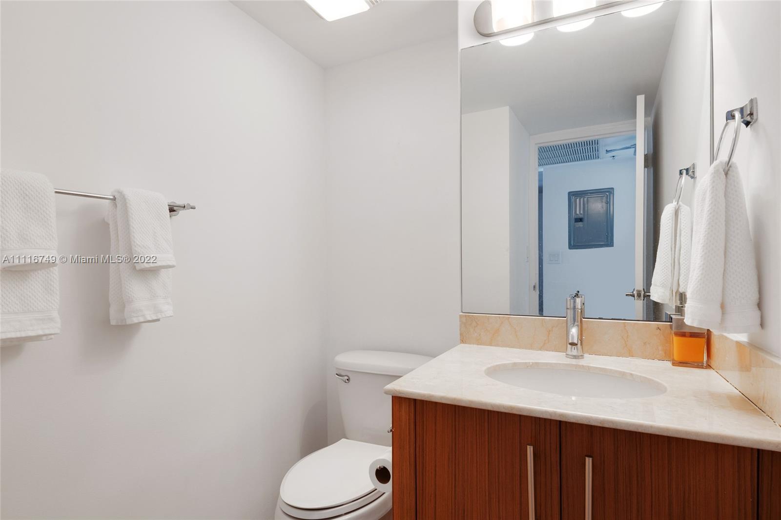 Breath taking views from this Spacious 1 Bed/1 Bath and 1/2 bath for guests, masterbedroom with a large walking closet, spacious bathroom enclosed shower/bathtub combination, Open kitchen with granite countertops, italian cabinetry, Miele appliances, side bar at the entrance. The condo offers Resort alike life style, Beach attended, Cafeteria Gourmet, large heated swimming pool, jacuzzi, Spa Sauna, Steam room & fully equipped GYM, Screening room, Club Room w/ TV Lounge and Wi FI, walking distance to Bal Harbour Shops, walks on the sand, best schools.