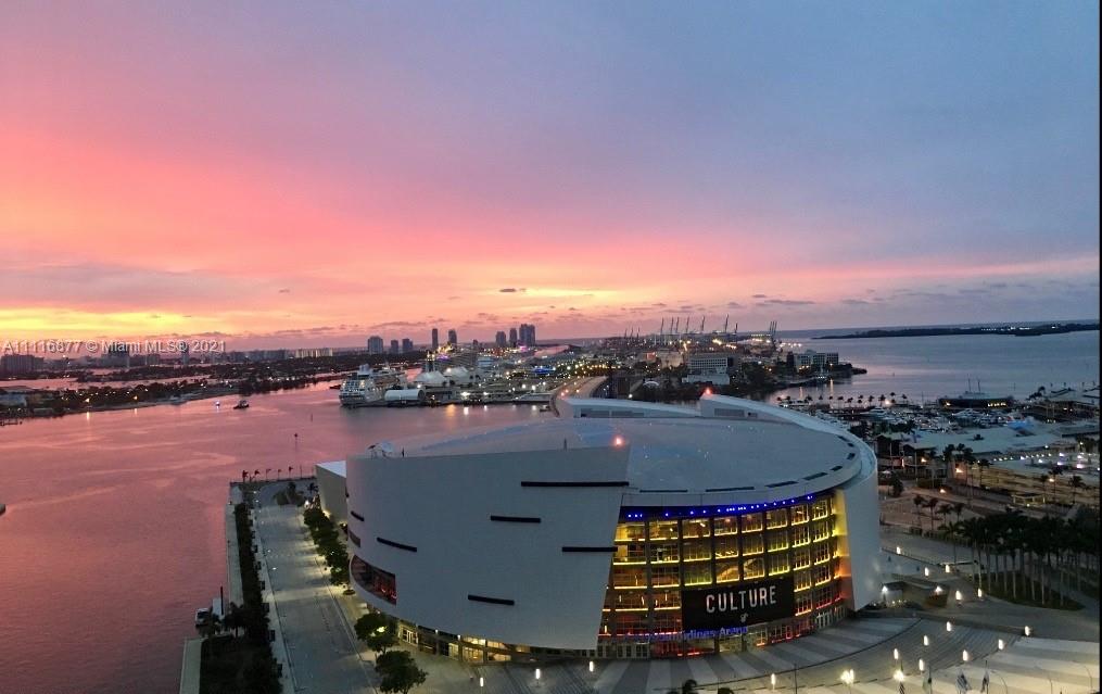 Marina Blue is a 57 story building by Architectonical with stunning water & city views from this 1 bedroom, 1.5 bath apt. Floor to ceiling impact windows/doors and large balcony accessible from living room and bedroom. Euro-style kitchen with granite counters and stainless appliances. Marina Blue has two heated pools, fitness center, sand volleyball, hot tubs, business center, convenience market, valet parking and 24 hour security. Great downtown location near the Adrienne Arsht Center for the Preforming Arts, Bayside Park, American Airlines Arena, Perez Museum, shopping and dining. Just minutes to SoBe, Wynwood, Design District, Brickell and Midtown. Metro-mover conveniently close. Extra storage on 9th floor. See attachments for disclosures.