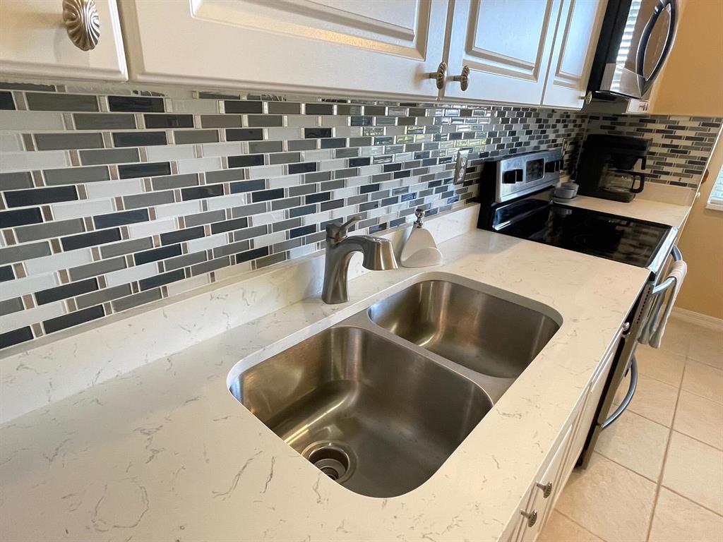 BEAUTIFULLY MAINTAINED 3/2/2cg corner Villa in the UPSCALE ANDROS ISLE gated community. HOME FEATURES INCLUDE: Accordion shutters, Knock down/volume ceilings, tile flooring, high hat lights, arch doorways. MANY specialty items throughout!! Master with Tray ceiling, crown molding, his & her walk in closets opens up to your private screened porch. Love your upgraded eat in kitchen with quartz countertops, backsplash, SS apps, pull out drawers, pantry and more!! Opposite end of home has laundry, guest bath, 2 and 3rd bedroom which could be used as office or den, plus 2 car garage. Andros Isle offers lawn care, cable with DVR & broadband internet, house painting, and pressure cleaning every 7 years, 24 house security, & numerous activities to enjoy. Call with questions, Best wishes to you!