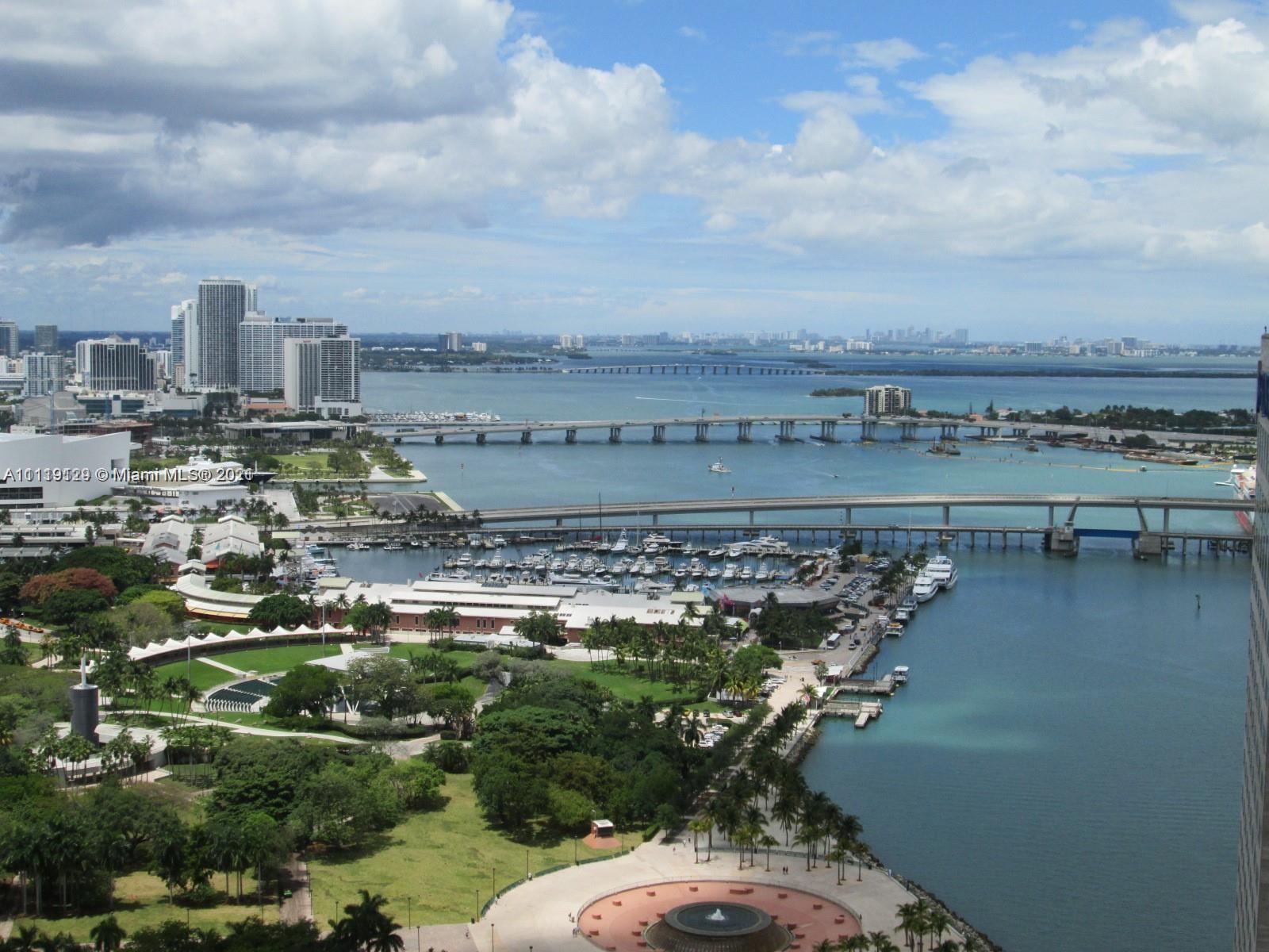 Fabulous LARGE high floor One Miami Studio with the very BEST studio view in the complex. Vistas of the Bay, Cruise Ships and Skyline as far as the eye can see! All ceramic flooring and Italian Cabinetry. Super low maintenance. Storage unit included plus low floor assigned parking level. $1000 Seller's Credit for Washer/Dryer.
