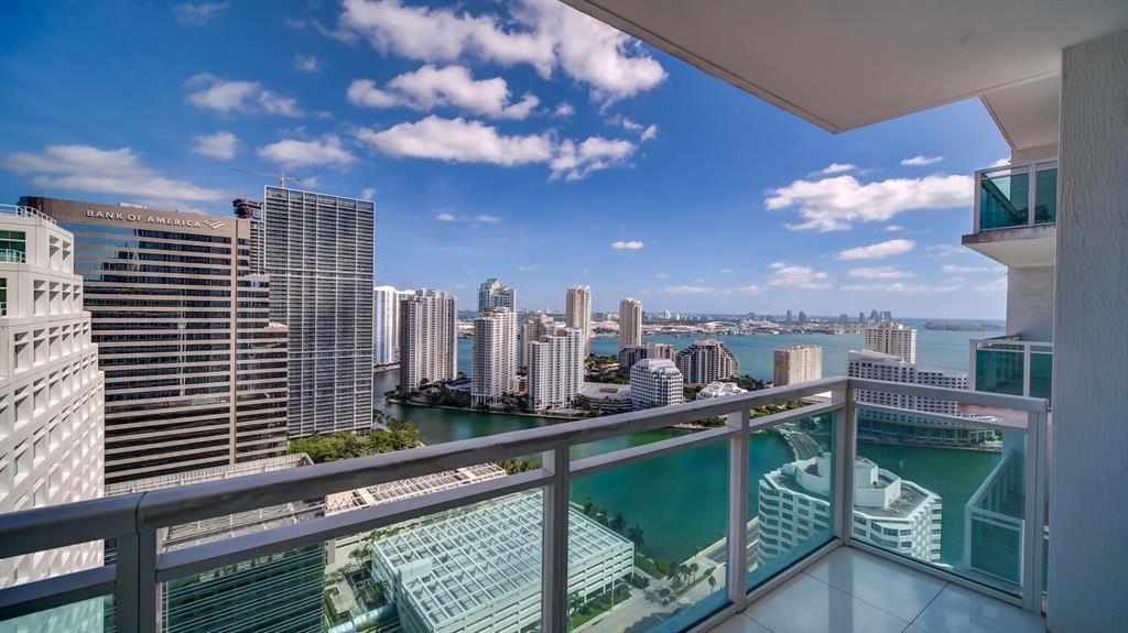 Desirable North-East view from a high floor, bright & spacious 2-Bedroom/2-Bathroom condo with panoramic bay views. European-style kitchen with granite countertops, backsplash, pantry & plenty of cabinetry, and stainless steel appliances, white glass and marble flooring, ample walk-in closets and oversized master bathroom with dual sinks, freestanding tub and a separate shower. Amenities include, movie theater, business center, fitness center, pool & spa, security, and 24/7 valet parking. Close to Mary Brickell Village and Brickell City Centre. Truly one of the best locations in Brickell!