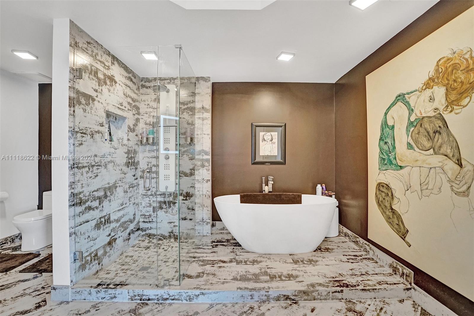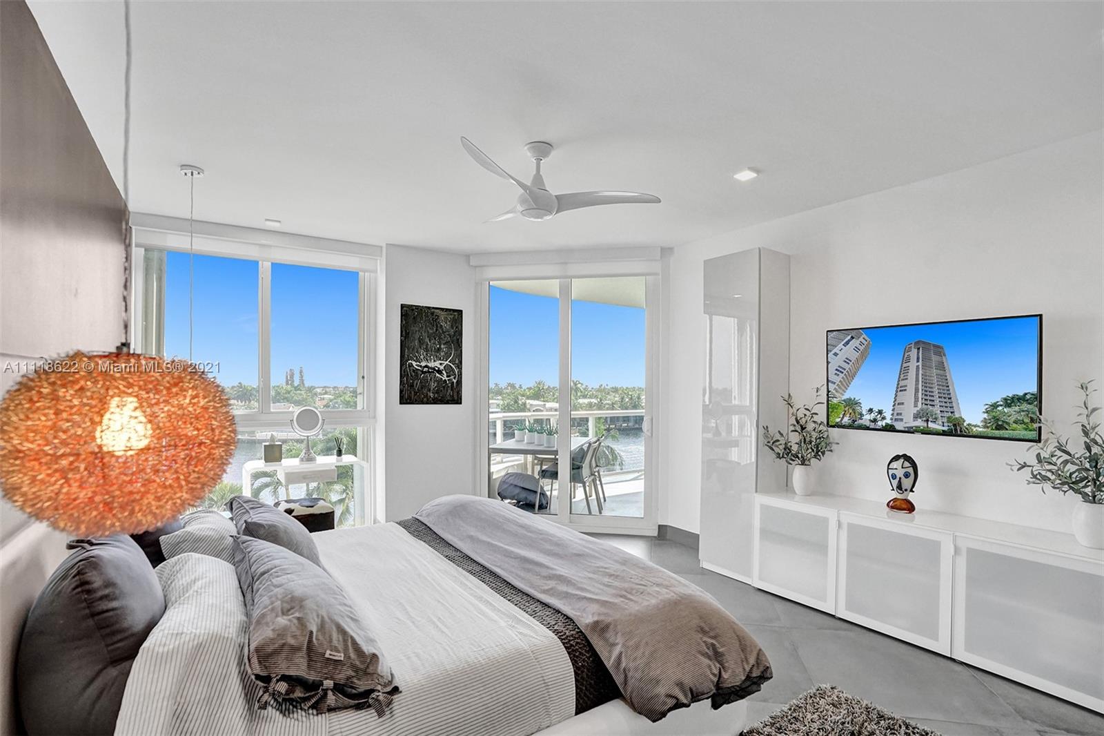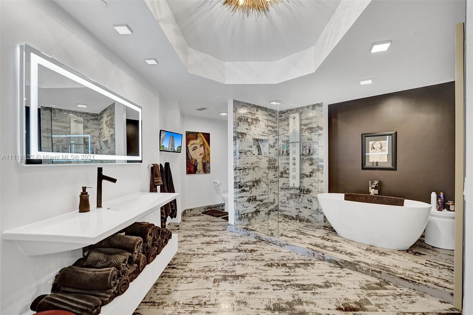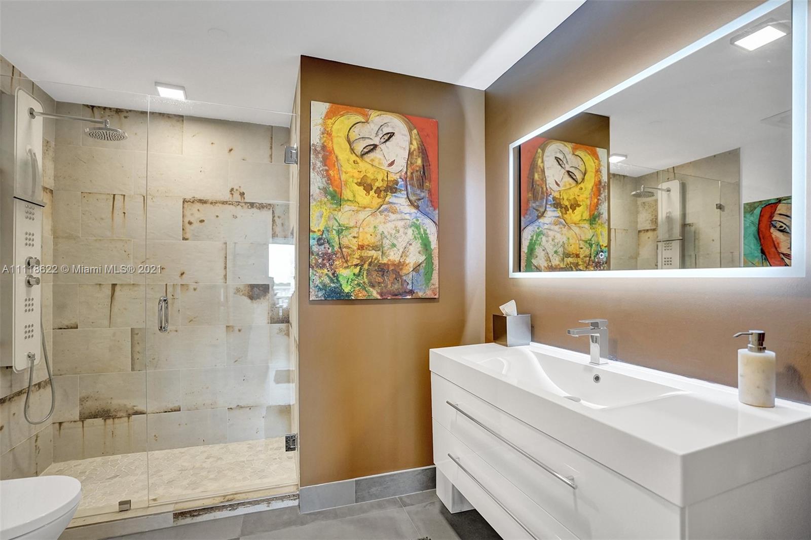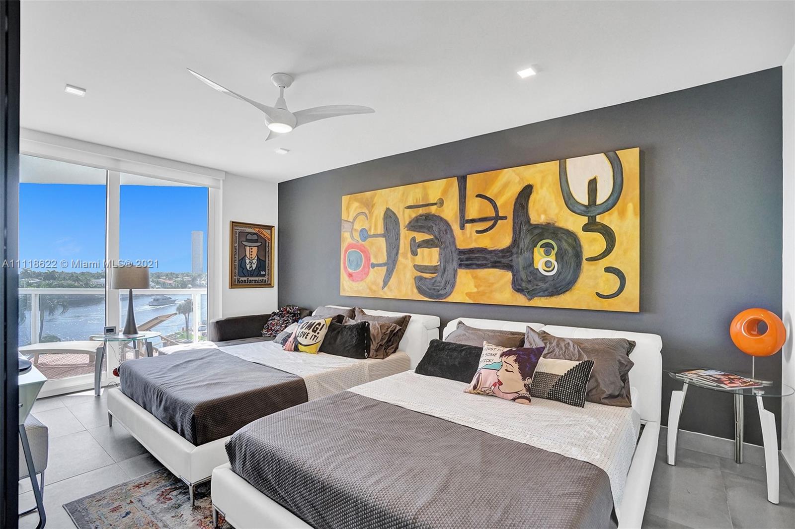 This impressive contemporary residence surrounded by Awe-inspiring water views. Fully remodeled unit with incredible outdoor space accessible from every room. Features porcelain tiles and recessed lighting throughout. LED colored lighting surround in main room. Electric shades. A stylish kitchen that flows through to the dining room. Stainless steel Viking refrigerator & Kitchen Aid appliances, Reverse Osmosis water filter, white & grey cabinets, quartz counter tops & back splash. 3 bedrooms, 2.5 luxurious baths. Master bedroom with walk-in robe & ensuite, modern free standing oval bathtub, separate glass shower with elegant porcelain tile. Extraordinary Smart home/electronics features. One Island Place, a luxury gated resort style community that has direct access to the Waterways Marina.