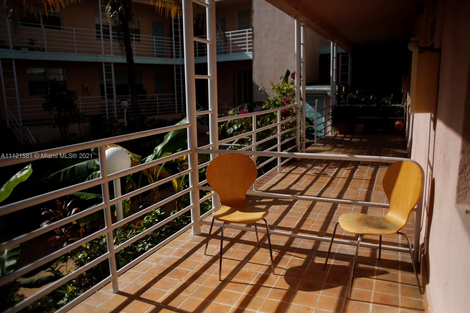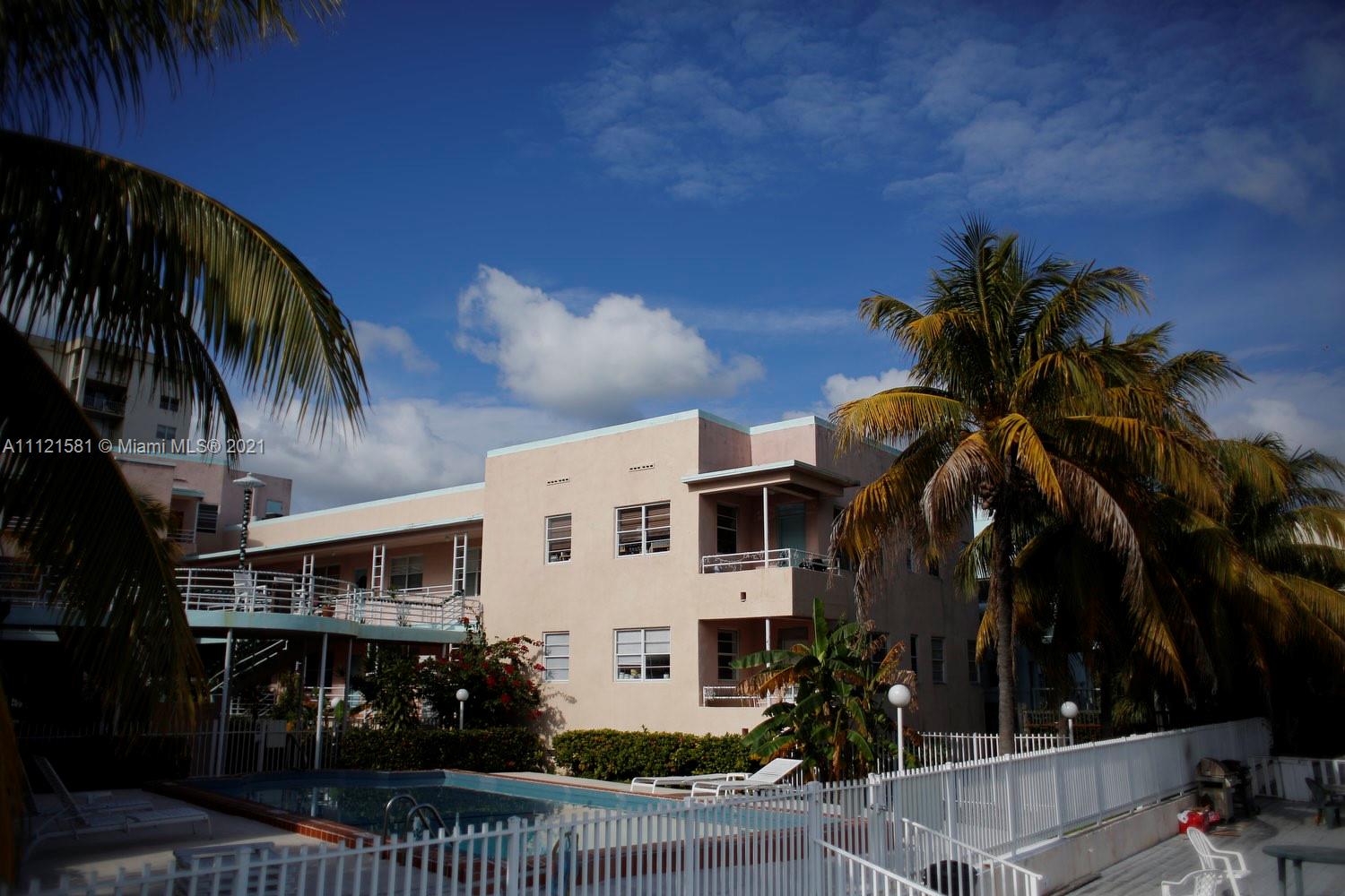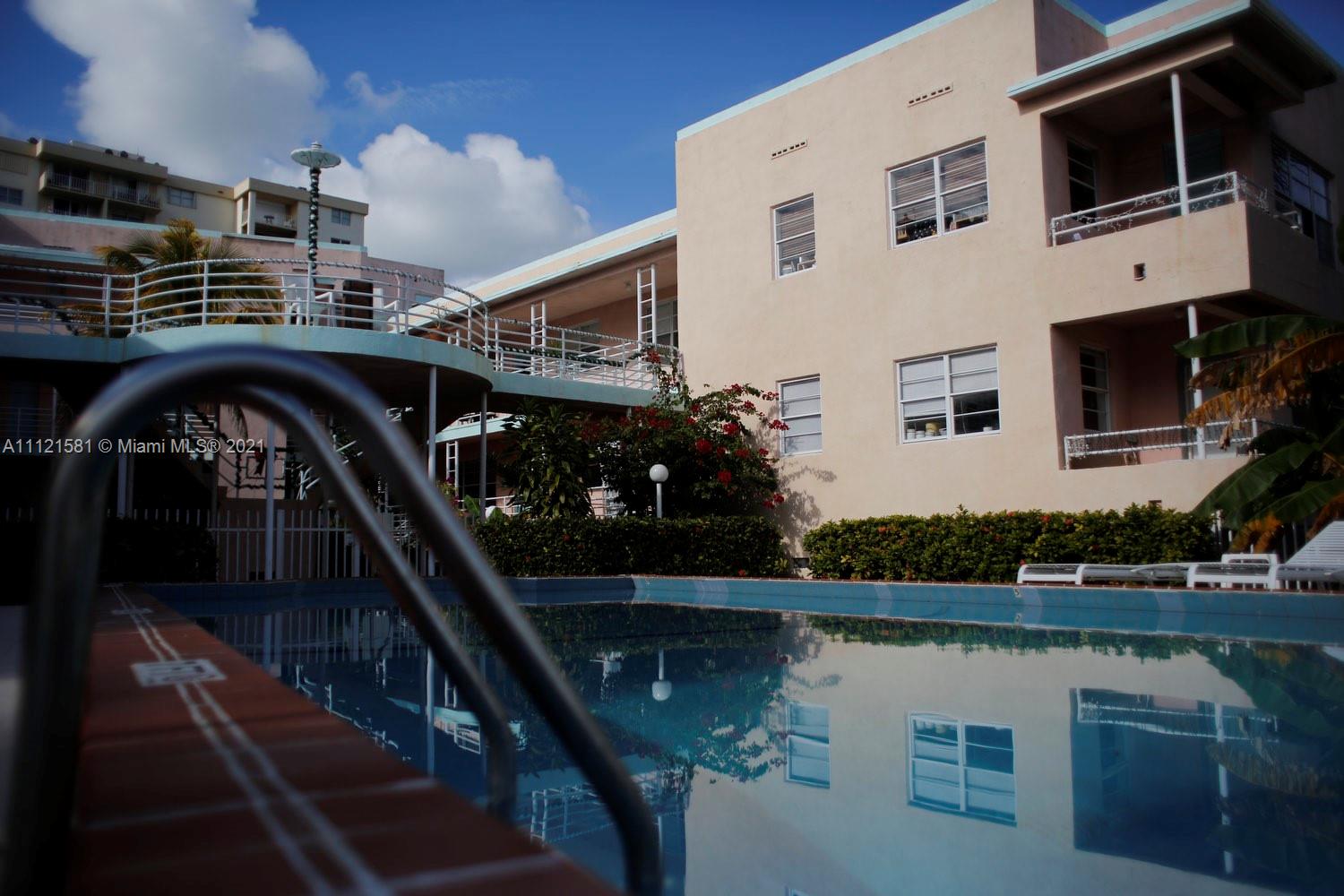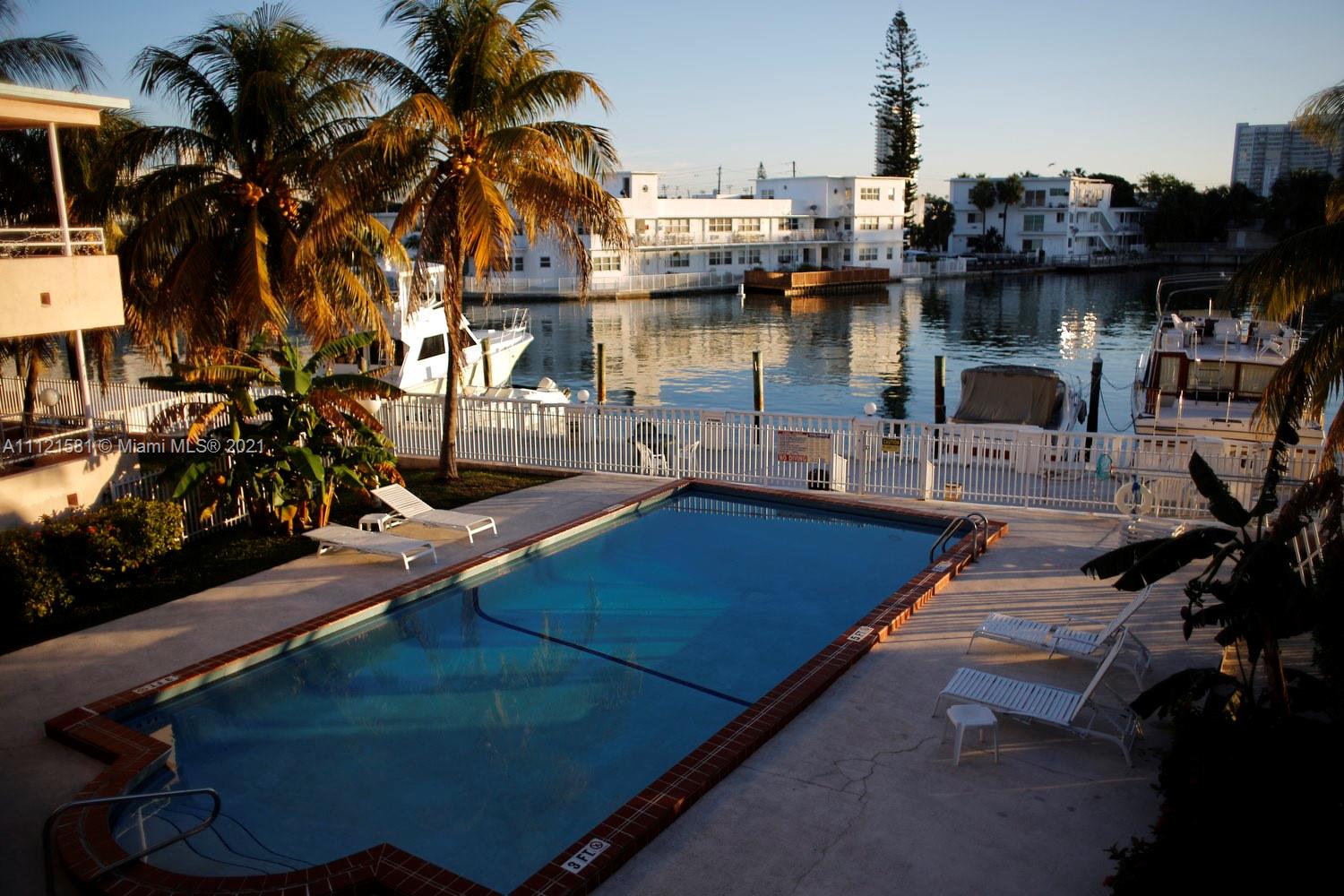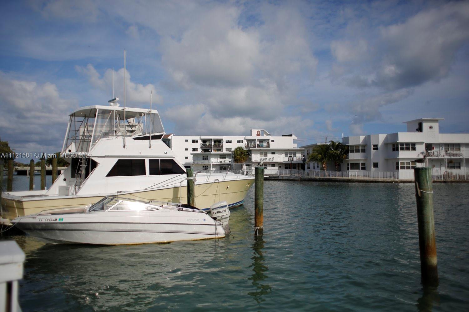 Lovely condo rarely available, lush garden courtyard, natural wood floors, walk in cedar closets, close to shopping, restaurants, farmer's market, super walkable neighborhood, just blocks from the beach, deep water boat dock right on the canal, available for rent for a boat up to 40" pool, individual patio, 2nd bedroom/office. Swimming pool overlooking pier in the beautiful Miami Beach Normandy Isle community. Street parking. Easy to Show. Designed by B. Robert Swartburg, one of the leading architects in Miami in the 1940s who helped develop the MiMo Modern style, also famous for designing the Delano Hotel and the Vagabond. This building is one of his signature projects, and is protected as part of Normandy Isle Historic District. Tenant in place, willing to continue leasing or leave.