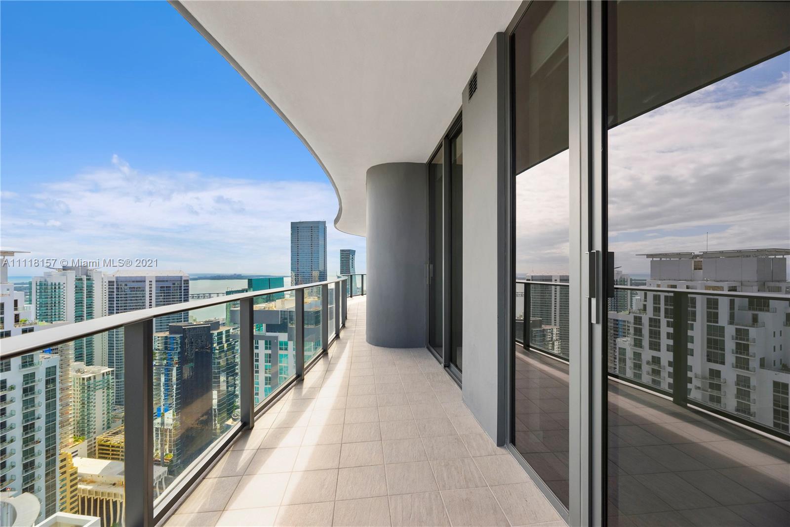 Brickell Flatiron Penthouse. Unobstructed panoramic views with SE Exposure [Best line] Corner unit with wrap around balconies throughout. 3 Beds- 3.5 Baths with 1,955 SQFT of living area, 10 ft. ceilings, floor to ceiling impact windows and sliding doors, Italian Snaidero Kitchens and Bathrooms, built-out closets, Miele appliances, and other luxury finishes. Full-service building with concierge service and resort style amenities includes the 64th Floor Sky Club, a spa, gym, theater, and lap pool, club room, lounge room, movie theater & Billiards. Two assigned parking space and valet service. Fantastic location in the heart of Brickell. Vacant turn-key unit easy to show.