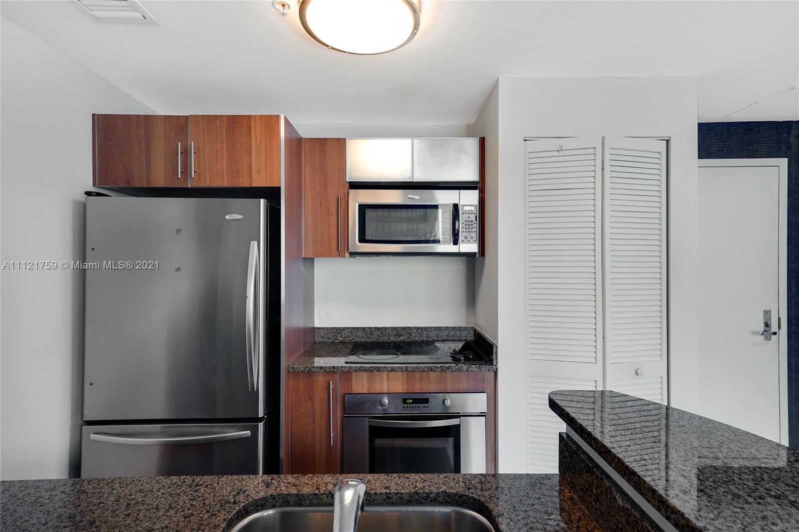 1 Bedroom, 1 1/2 Baths at Met 1 Condo. Italian cabinets with granite countertops and stainless steel appliances. Washer and Dryer in unit. Two story loft with fabulous water views and 19'4" high ceiling and porcelain throughout. Association includes insurance, water, cable, internet and phone. Large dining and living downstairs and bedroom with den upstairs. Includes 2 assigned parking spaces.