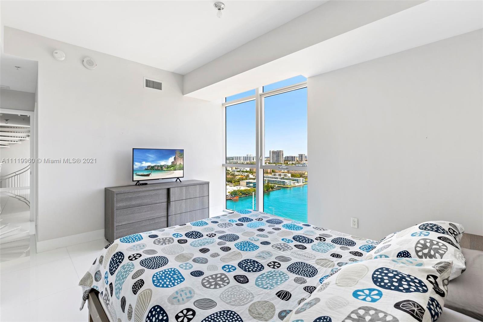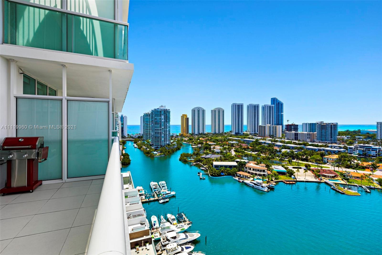 This beautiful unit 3 stories penthouse is located in the heart of Sunny Isles Beach. Big balcony and spectacular views of the Bay and the Ocean with huge rooftop deck & jacuzzi. Marvel at the view from the spacious main floor and balcony with private marina and dock below. Designer closets, room darkening electric shades, High-end appliances with granite, counters, gleaming white marble floors thru-out, spiral staircase, and grey wood grain cabinetry give a warm and sophisticated look, 2 assigned parking spaces. walking distance to the Beach as well as fine dining.