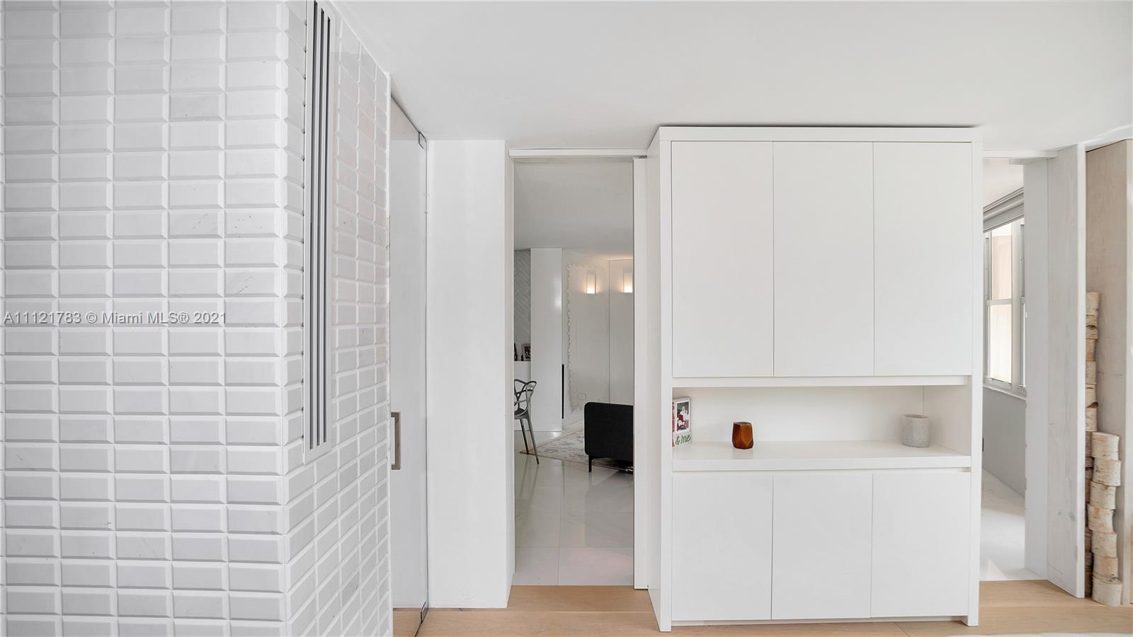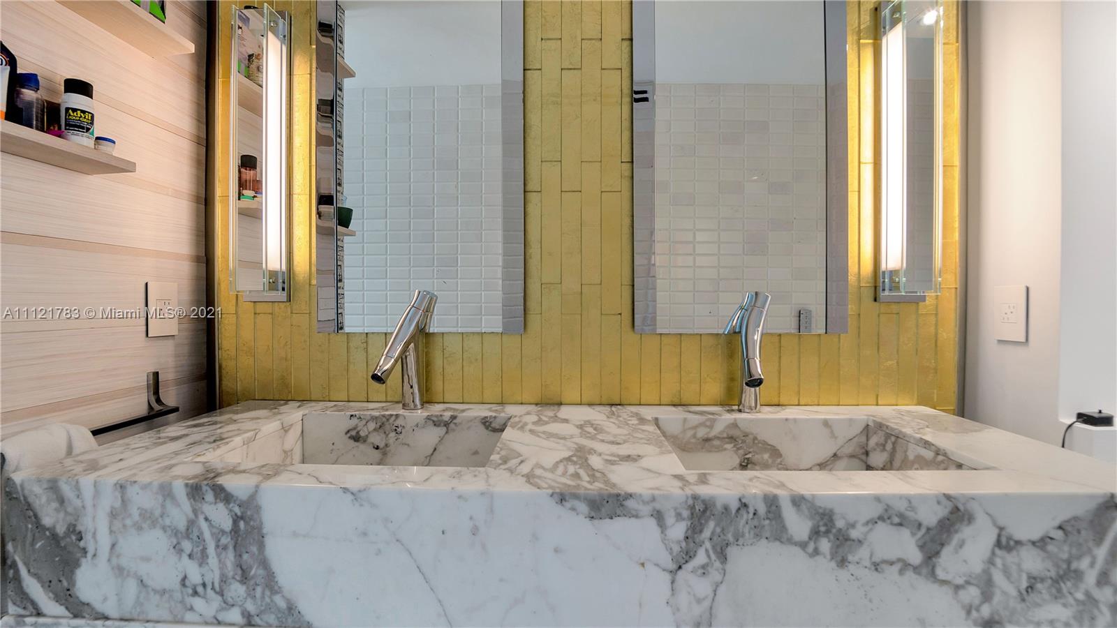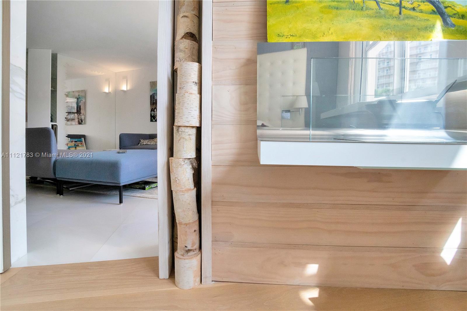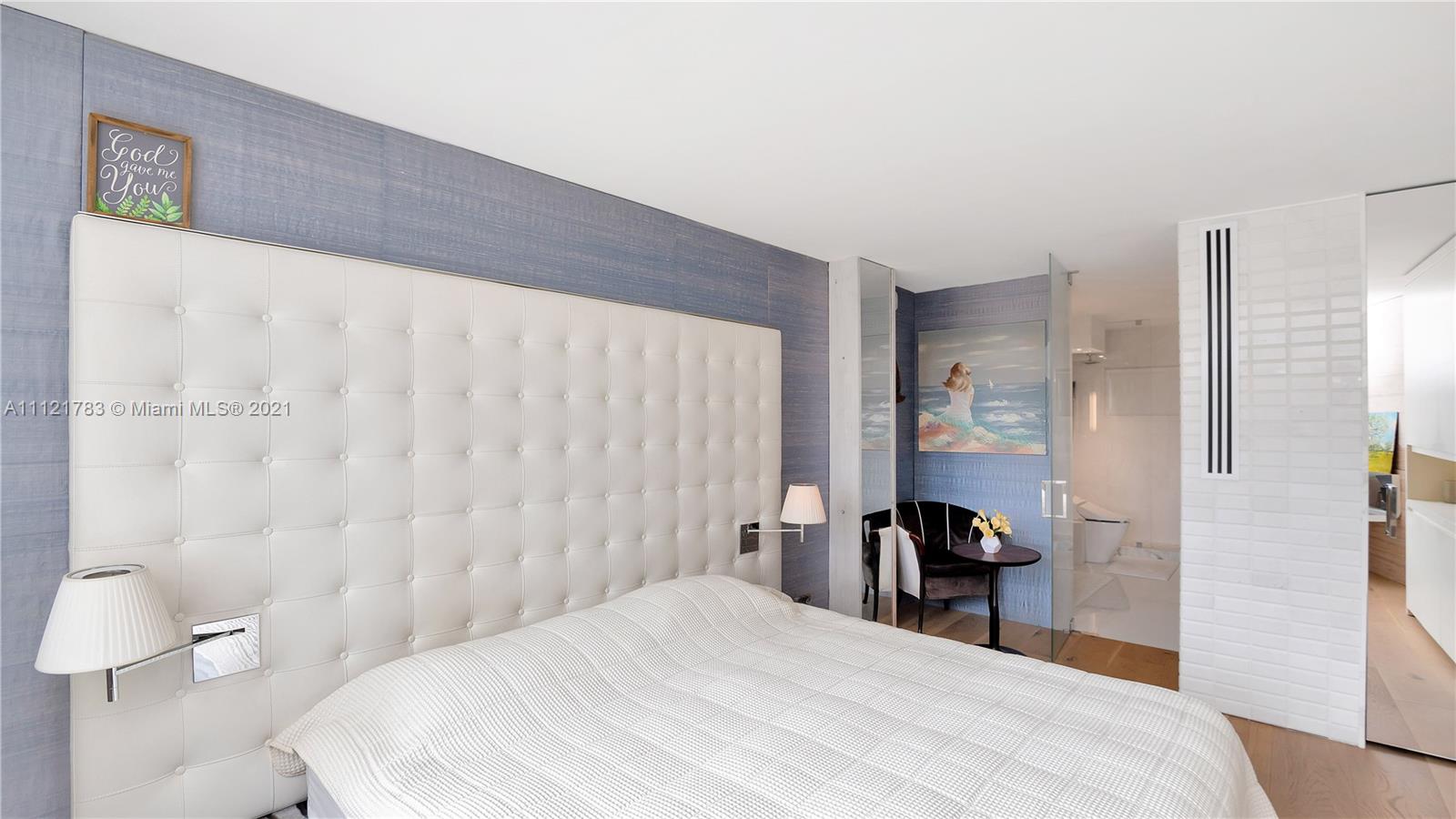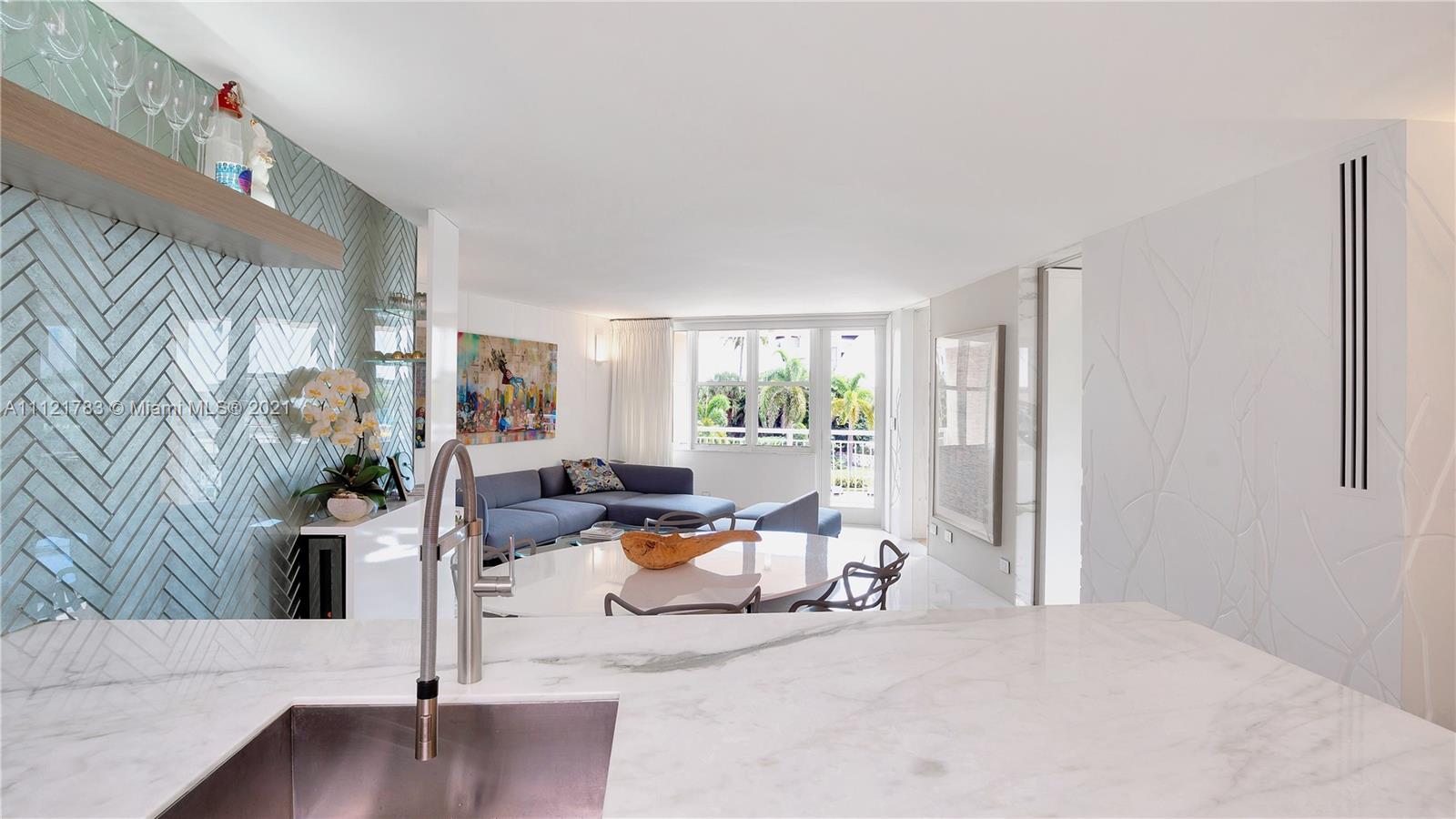 An extraordinary modern, completely custom living experience, right across the ocean, where every space was created to achieve resort-like lifestyle, this one bedroom apartment has exquisite features. The high-end custom kitchen has sub zero and Miele appliances, ceramic cook top, organic Calacatta Italian marble counter top, water fall designed to accommodate 3-4 bar stools and a sophisticated herringbone backsplash wall covered with glass silver tile selected by an Ann Sacks designer and 2 wine cooler refrigerators. Top of the line bathroom, double custom organic marble vanity, highly crafted shower space and Japanese toilet. White floor marble and white oak floor, automated shades, linen custom curtain, balcony looking over the pool, hurricane impact windows with UV protection.