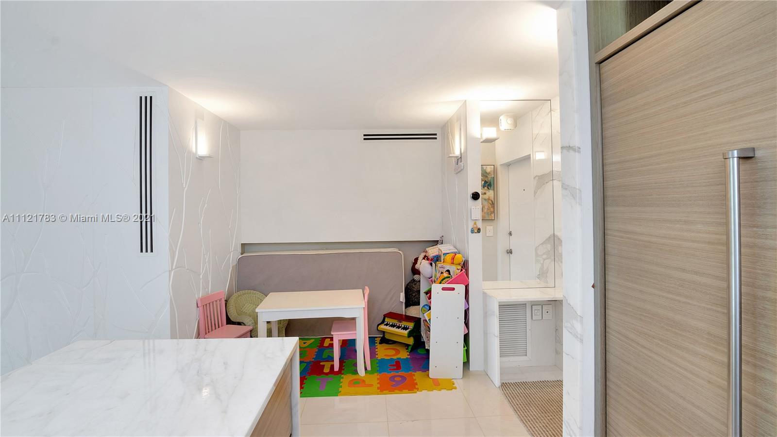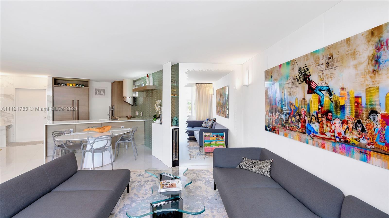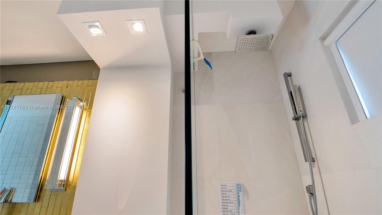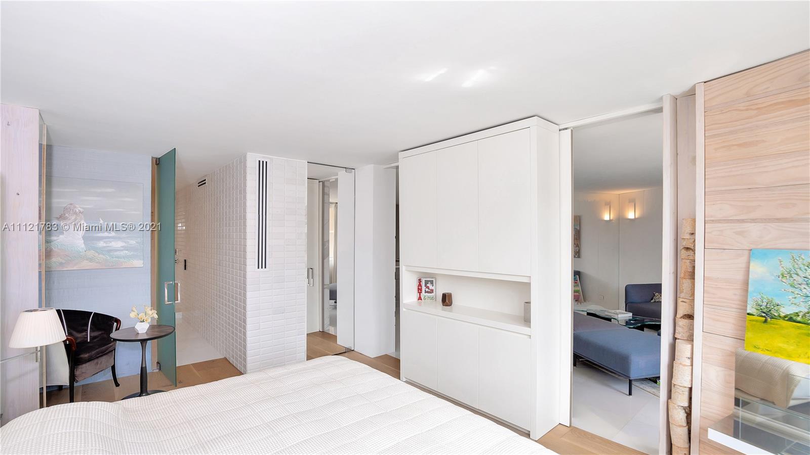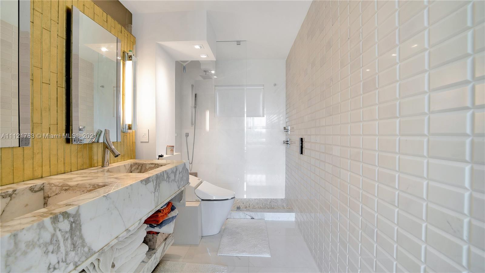 An extraordinary modern, completely custom living experience, right across the ocean, where every space was created to achieve resort-like lifestyle, this one bedroom apartment has exquisite features. The high-end custom kitchen has sub zero and Miele appliances, ceramic cook top, organic Calacatta Italian marble counter top, water fall designed to accommodate 3-4 bar stools and a sophisticated herringbone backsplash wall covered with glass silver tile selected by an Ann Sacks designer and 2 wine cooler refrigerators. Top of the line bathroom, double custom organic marble vanity, highly crafted shower space and Japanese toilet. White floor marble and white oak floor, automated shades, linen custom curtain, balcony looking over the pool, hurricane impact windows with UV protection.