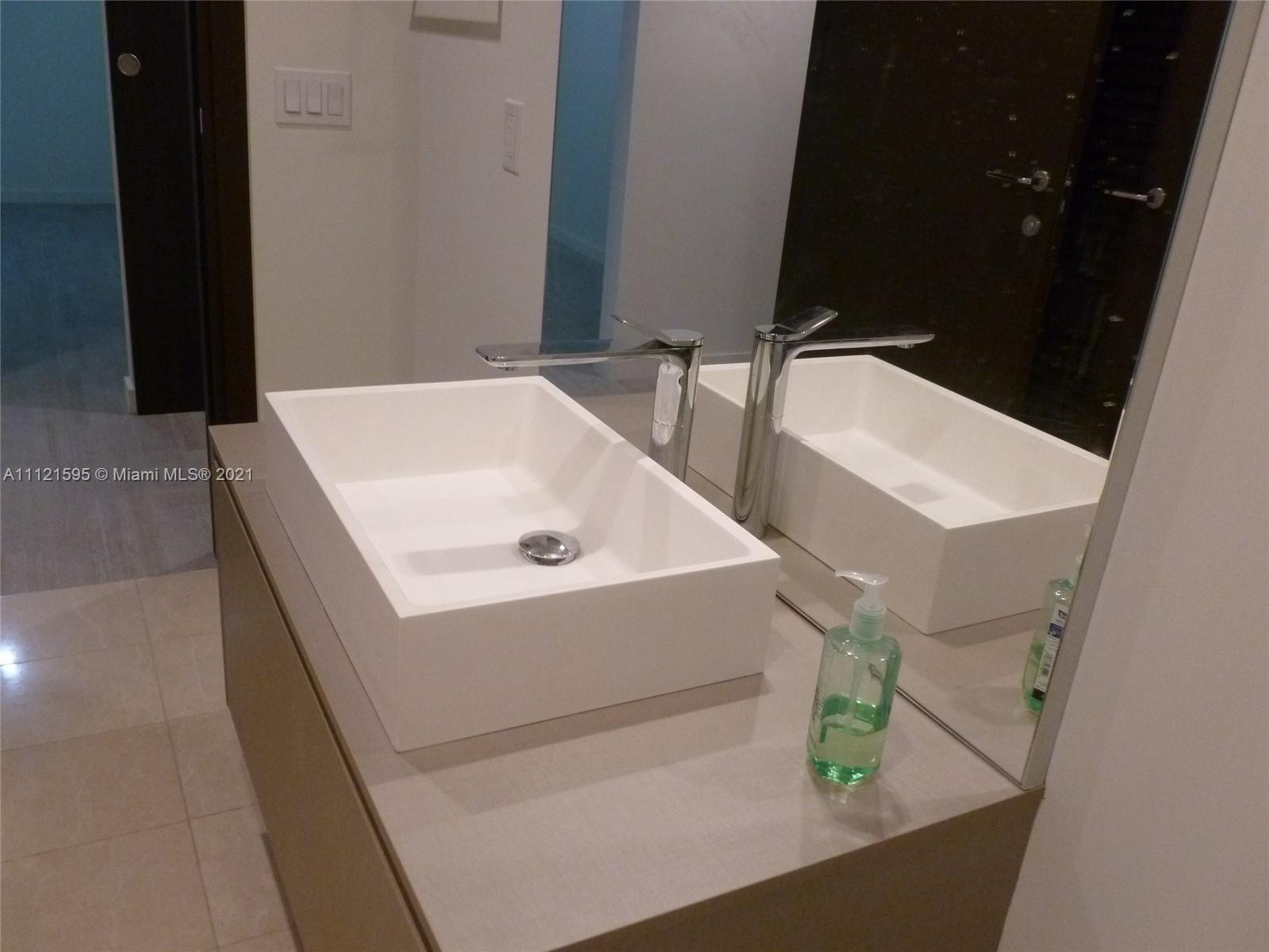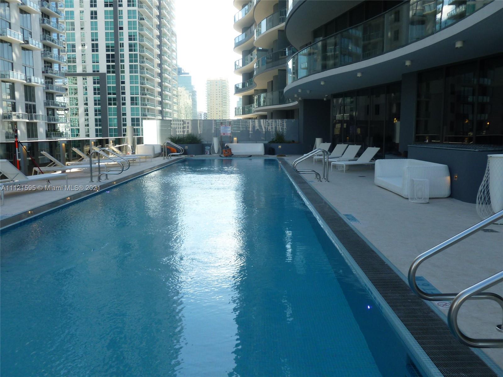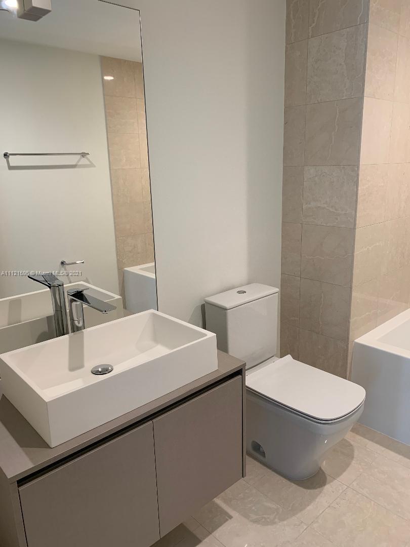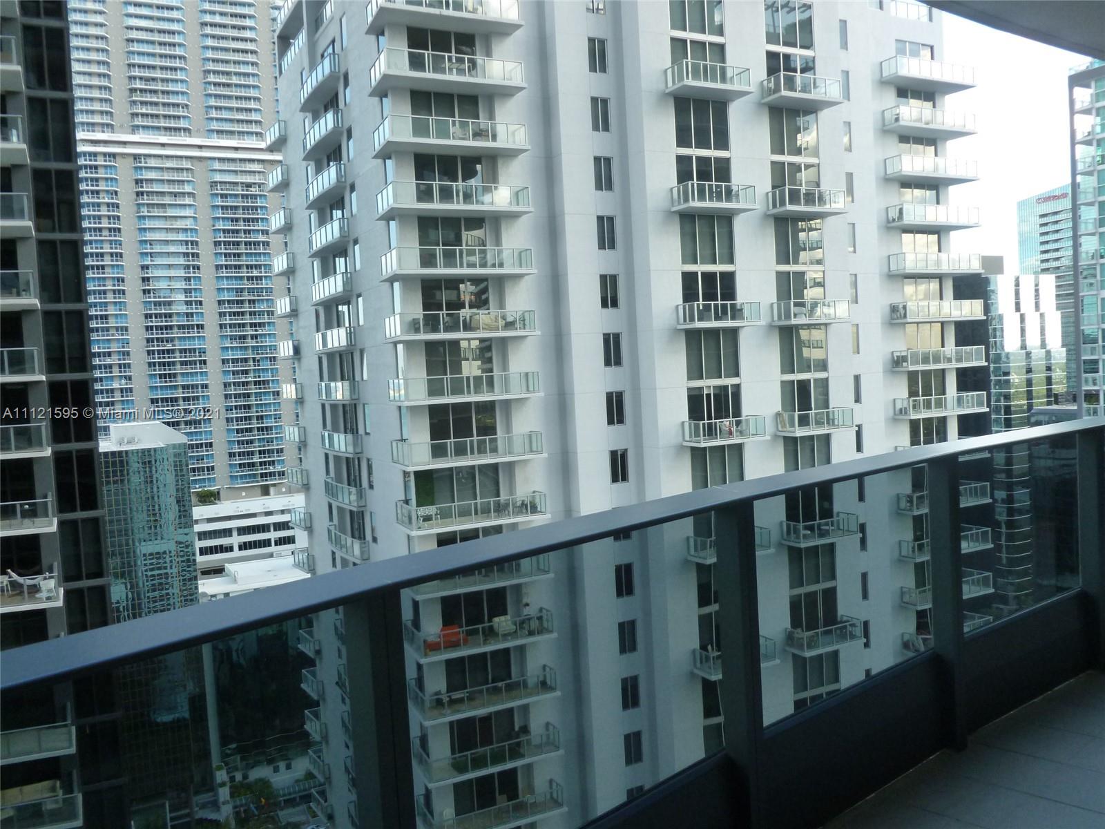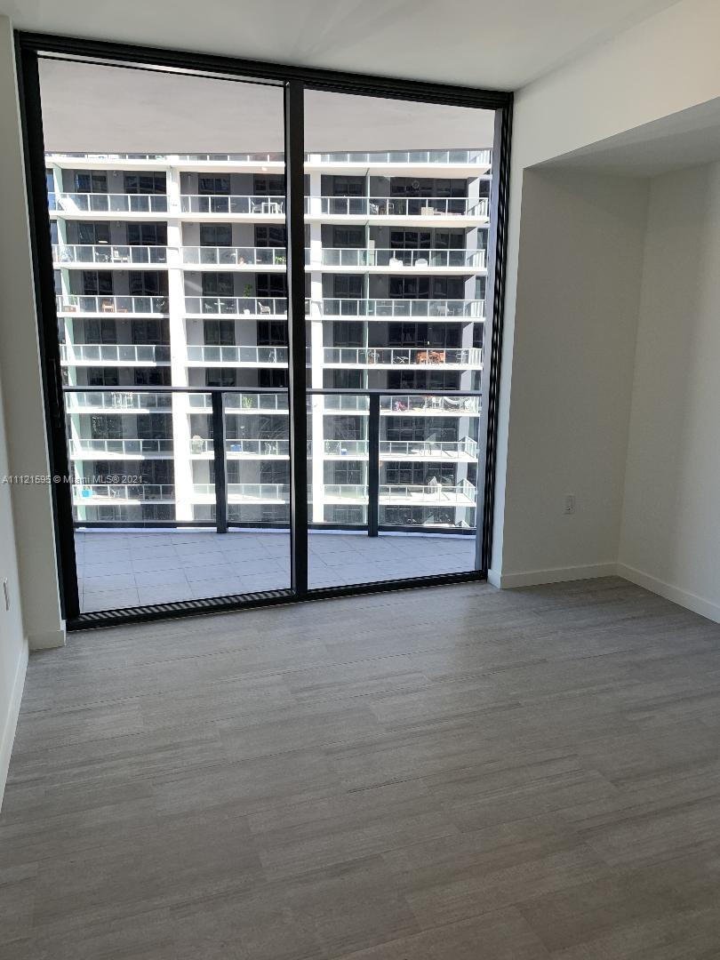 Beautiful apartment at Brickell Flatiron on the 28th floor. A 64 story glass tower, in the heart of the Brickell district. One bedroom and den which has a barn door and can be used as a 2nd bedroom and 2 full bath. Great Italian finishes, open kitchen top of the line appliances, large balcony, custom made closets and shades. Amenities include: Theater, billiard, cigar rooms, children's play ground, wading pool on 18th floor, roof top pool, gym, spa, and lots of other amenities. One parking space plus valet. Concierge.