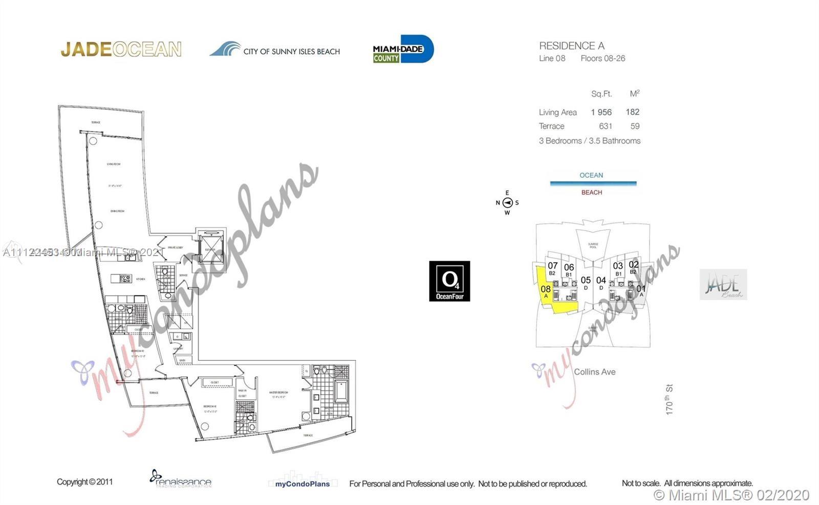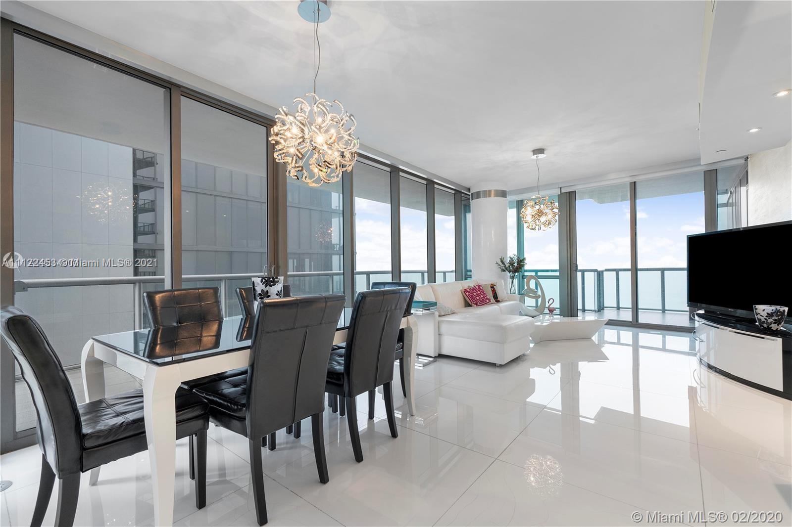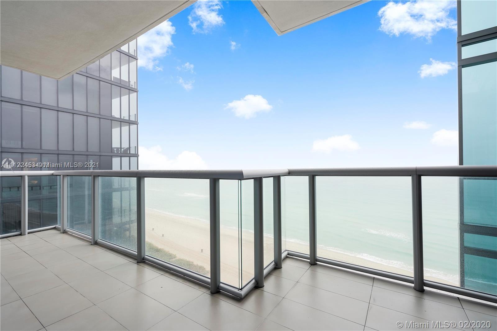 Beautiful corner unit in luxurious all glass oceanfront Jade Ocean. If you are looking for a great price point, modern architecture at affordable price, look no further. 3 bed/3,5 baths with private elevator and with 3 terraces overlooking breathtaking sunrises and sunsets. Brand new A/C units has just been installed in October 2021. Unit is being sold with the furniture and all light fixtures and art work. 1 assigned parking space. 1 storage unit. Building offers 2 infinity pools, sauna, fitness center, children's room , movie theatre, spa and concierge services.