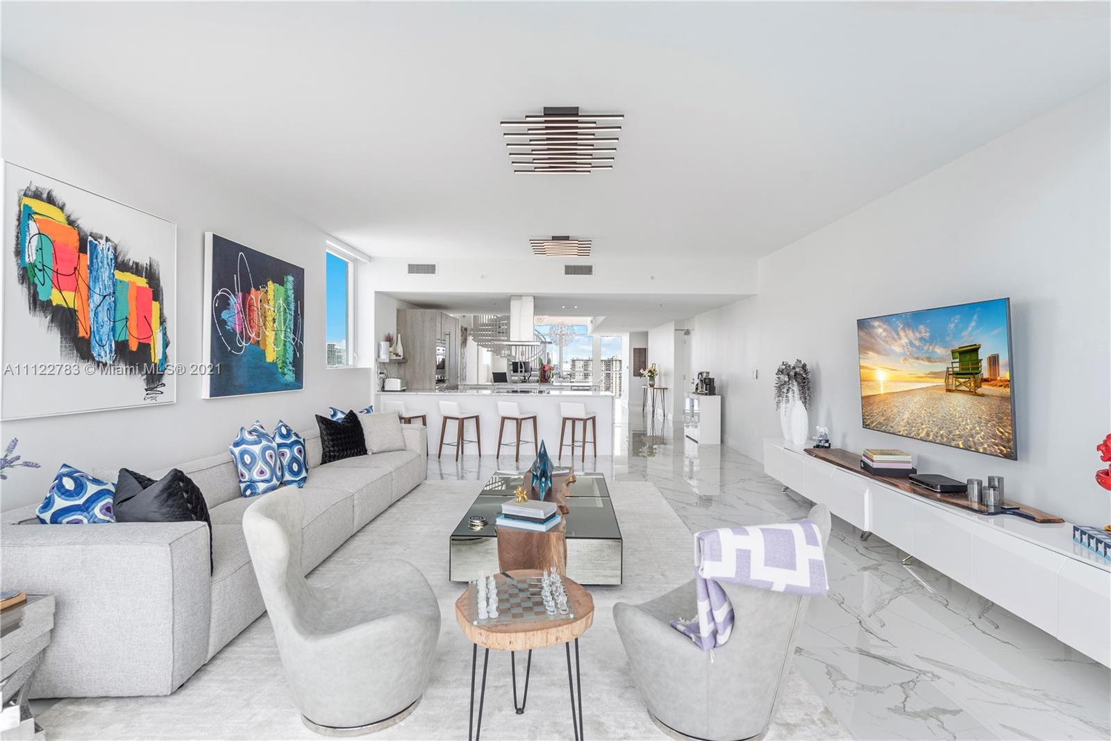Introducing 3 story loft-style Penthouse. Whether you’re drawn to the stunning views, the envy-inducing artworks, or the fancy furnishings this apartment is sure to inspire you. Boaters paradise - marina is located just in front of the building. Airy and spacious 4 bed, 4.5 bath, over 4,000 total sq. ft with spectacular views from every room. The real gem is the large private terrace with exceptional views of the ocean, intracoastal and city. Open living area, top of the line appliances, spacious walk-in closets. Exquisitely curated for a unique living experience! The complex offers full-time concierge, 24-hour complimentary valet parking, cascading infinity-edge pool overlooking the Bay, submerged aqua beds, hip cabanas for sunbathing in a more private atmosphere, and more!