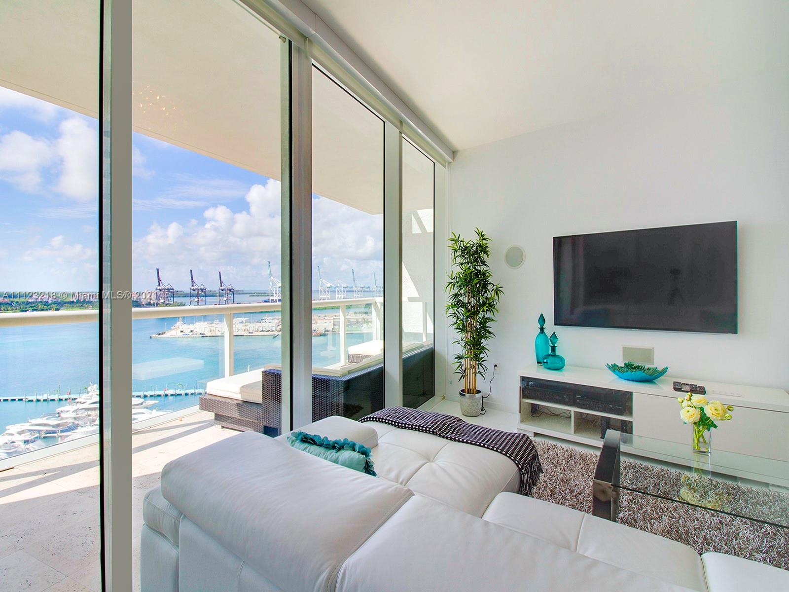 Spectacular views of Fisher Island, Miami Beach Marina, Downtown Miami and amazing sunset views. A split floor plan with 2 bedrooms and open den. Plenty of light throughout, modern and clean lines residence. Expansive primary bedroom with jacuzzi tub and separate shower. All rooms have access to a large balcony, perfect to enjoy it all year round. Covered assigned parking, incredible amenities with fitness center, spa, 2 pools. Prime location next to board walk, park, marina, beach and great restaurants.