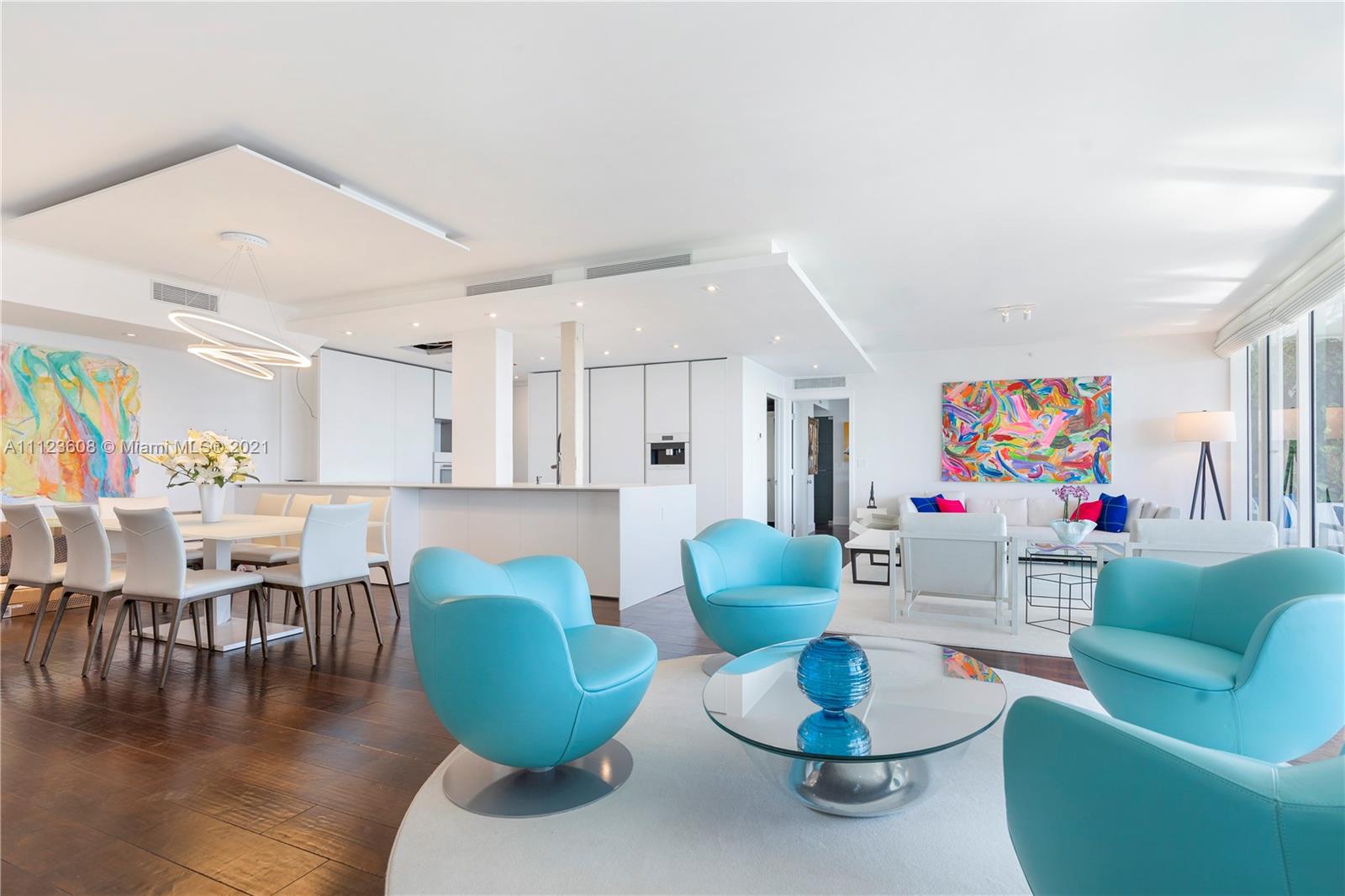 Highly coveted 06 line. Spectacular Panoramic Water Views at the Murano Grande. Lots of Natural Light thanks to the Floor-to-Ceiling Windows in Living area and both Bedrooms. Open Floorplan with 4 different seating areas: Formal Dining, Formal Living, Informal Living, and Kitchen Counter. Brand New Kitchen - Miele Appliances throughout with Porcelain Countertops and Wine Cooler. All three bathrooms are updated.