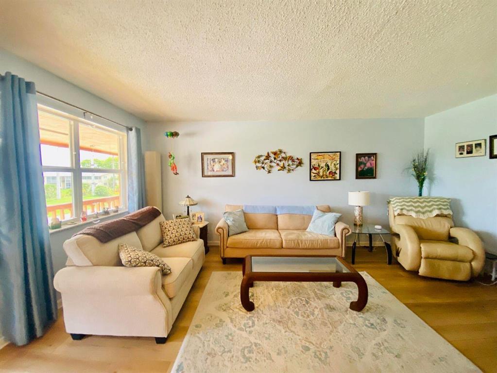 This 2 bedroom, 1 1/2 bath unit is in a fantastic location close to the fitness center and the pool. Updated kitchen and bathrooms and central air. This unit is complete with a full size washer & dryer. Beautiful gardens & landscaping. You will enjoy the South Florida lifestyle with amenities such as a fully equipped fitness center, club house with over 1000 seat theater, free transportation, close proximity to PBI airport, shopping, beaches and many restaurants.