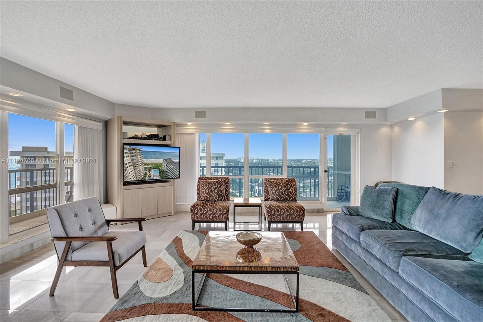 SOUTHEAST CORNER PENTHOUSE, LARGE WRAP BALCONY, SPACIOUS, FLOW THROUGH, BRIGHT AND OPEN FLOOR PLAN. DIRECT OCEANFRONT, INTRACOASTAL, SKYLINE, SUNRISE AND SUNSET VIEWS! SEMI-PRIVATE ELEVATOR, WITH DOUBLE DOOR ENTRY. THE SECOND BEDROOM HAS BEEN CONVERTED INTO TWO SMALLER BEDROOMS. EASY TO CONVERT BACK TO ORIGINAL LARGE SECOND BEDROOM IF DESIRED. "2" GARAGE PARKING SPOTS/TANDEM. WONDERFUL AMENITIES INCLUDED OCEANFRONT HEATED POOL, GRILL AREA, TENNIS, BOCCI AND PICKLE BALL COURTS. SITTING AREA WITH FIRE PITS. GYM, SAUNAS, VEHICLE CAR WASH AND MORE. SMALL PET WELCOME. PLENTY OF GUEST PARKING AND ADDITIONAL PARKING FOR OWNERS. OKAY TO LEASE IMMEDIATELY, TWICE A YEAR, FOUR MONTHS MINIMUM. SHOWINGS BEGIN WEDNESDAY AFTERNOOON, NOVEMBER 17TH.