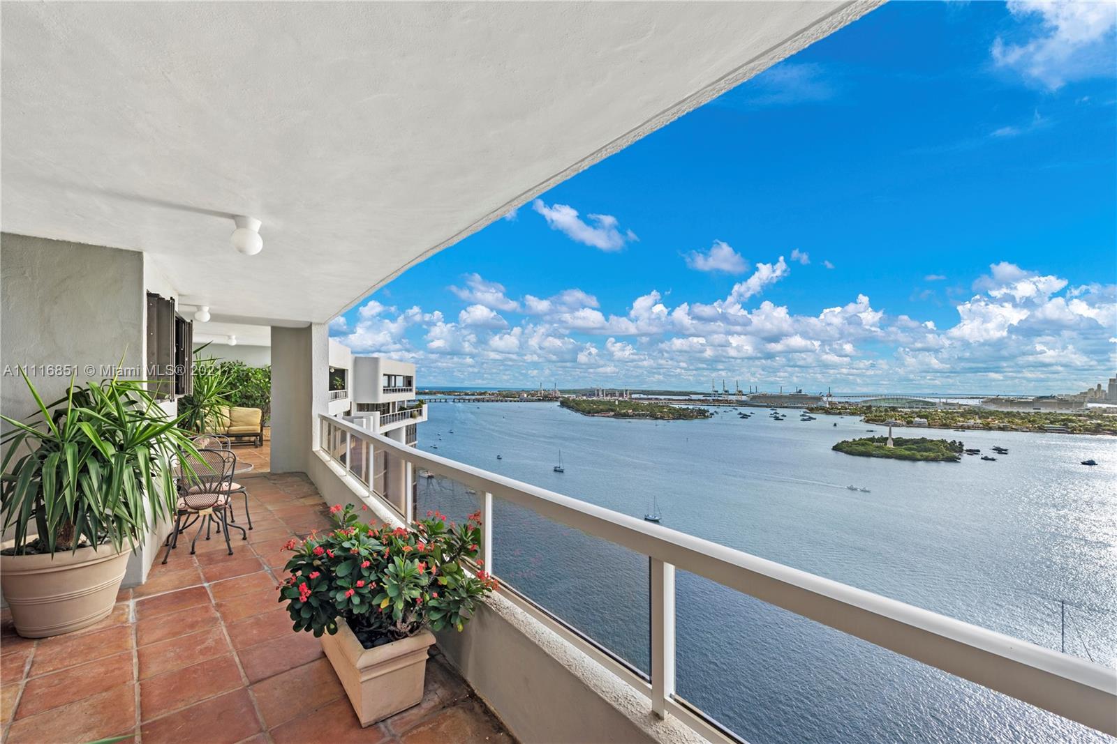 Best downtown & sunset views from this gorgeous 2 bed/3 bath plus Den in highly sought after full service luxury bldg. "Nine Island". Live the Miami Beach lifestyle from your rarely available Tower suite overlooking the bay & ocean with 180 degree views from every room! Relax on your huge patio terrace with lush greenery, and entertain friends at your spacious bar with great views! Enjoy just renovated grand lobby w/ new mezzanine floor, gym, in-house restaurant, children's play area, BBQ area, pool, tennis courts, & more! Close proximity to Belle Isle Park, Lincoln Road, Sunset Harbour, Trader Joe's, dining, shopping, top schools, medical center, airport, & beaches. 2 assigned parking + valet.