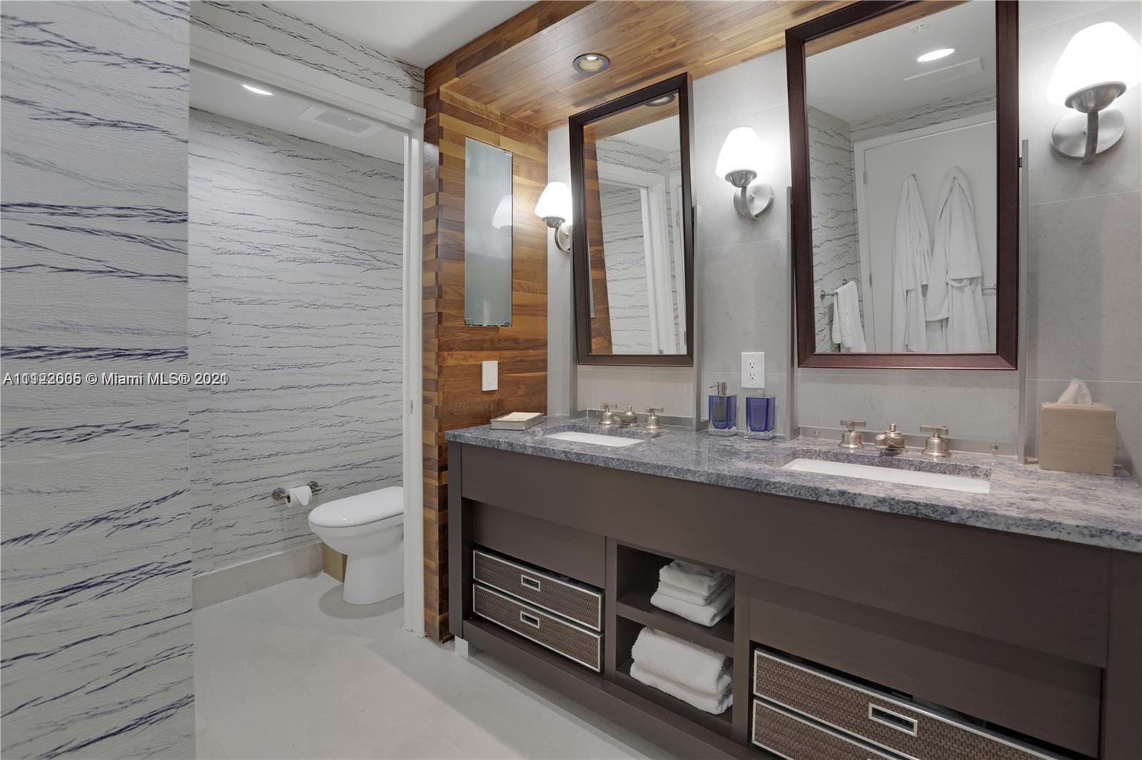 Exquisite Turn-Key 2BED/2BATH in the North Tower of Carillon Residences. Beautifully upgraded with recessed lighting and electric window treatments. A West facing unit for beautiful Biscayne Bay & Intercoastal water views overlooking spectacular sunsets. Enjoy every luxury of oceanfront living with 70,000sqft of spa amenities, 4 pools, over 50 fitness classes per week, and a health and wellness team plus beach & pool service. Featuring marble flooring throughout, this condo is updated with stainless steel gourmet Miele and Sub-Zero kitchen with imported Italian cabinetry, beautiful granite countertops, full backsplashes. The bathrooms are elegant: whirlpool tubs in master baths, granite vanity tops, and marble floors. Enjoy the luxury of oceanfront living in this renovated smart home.