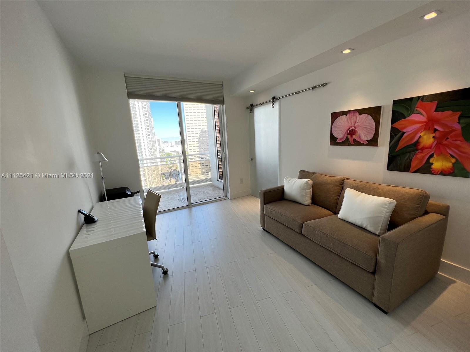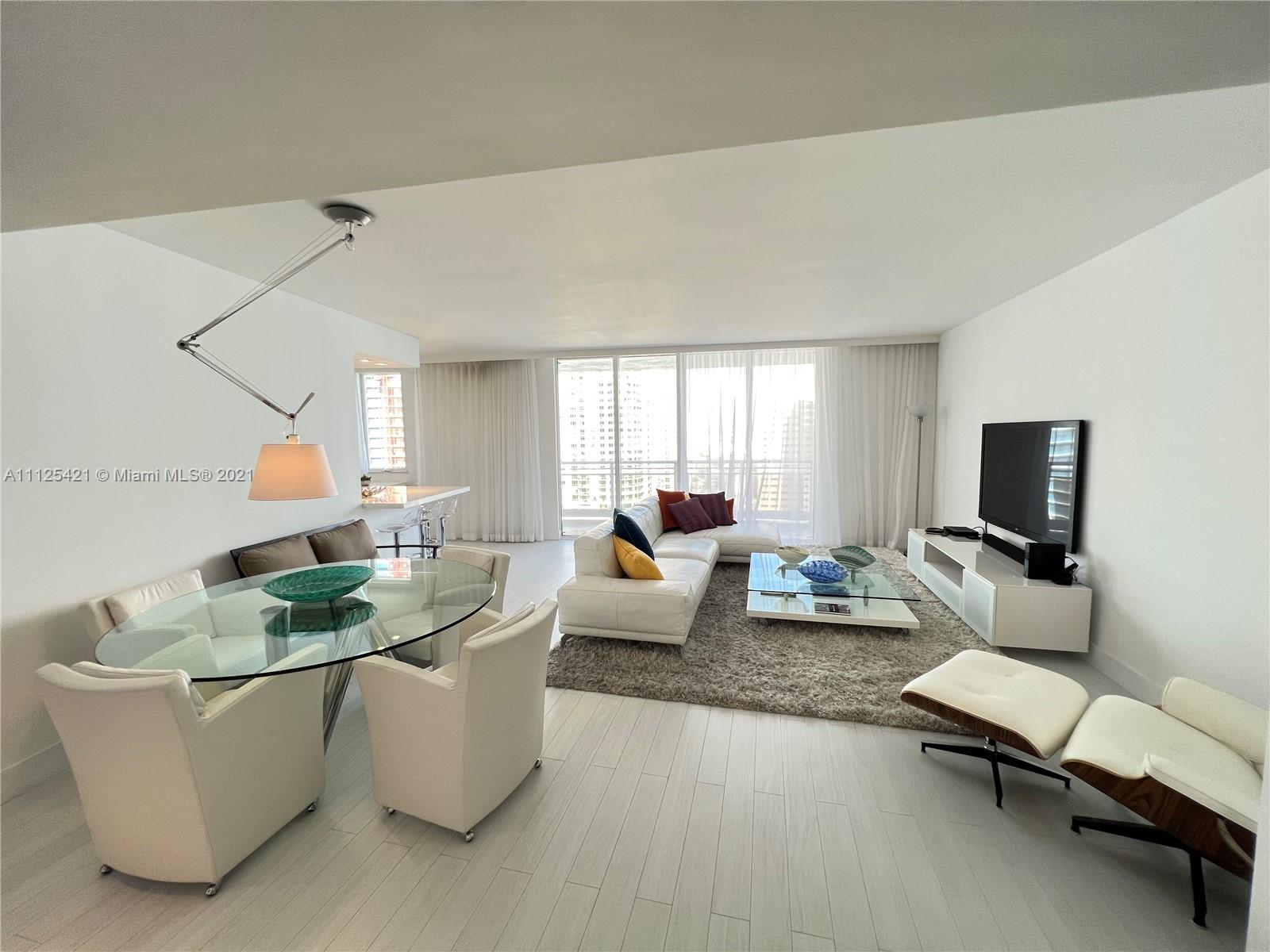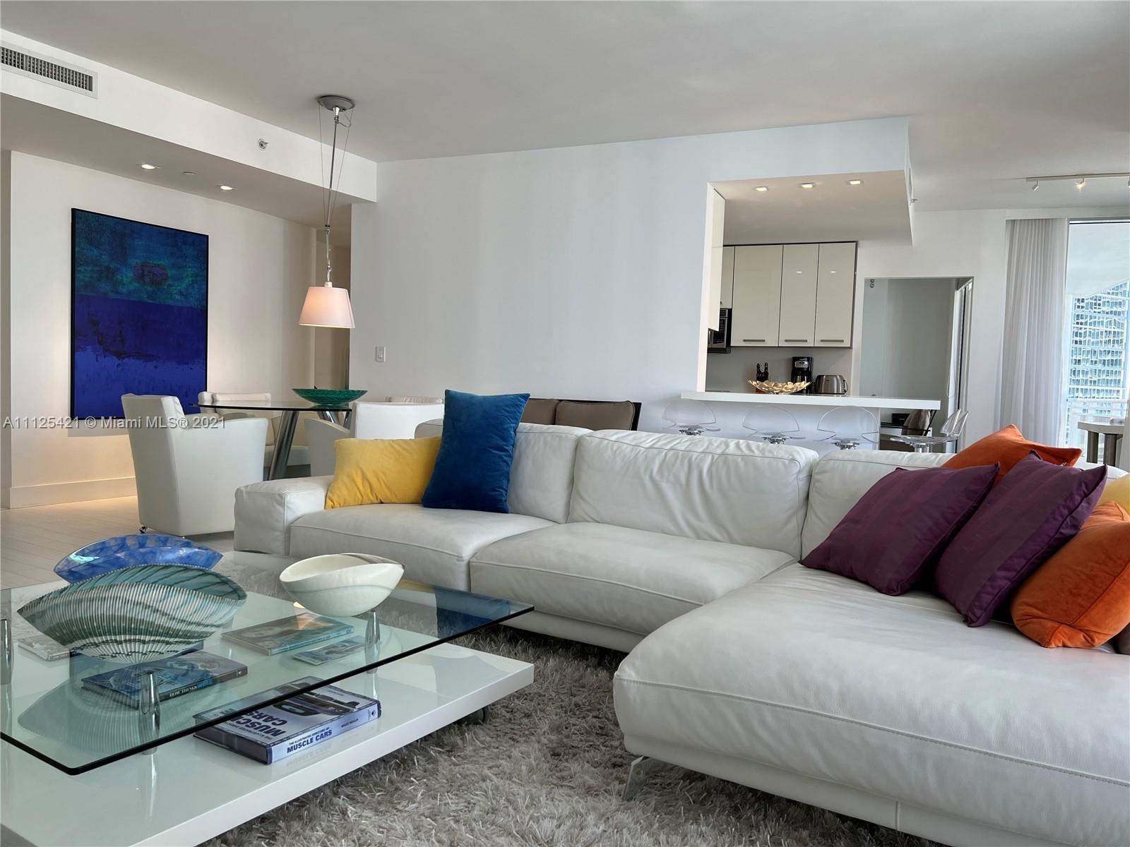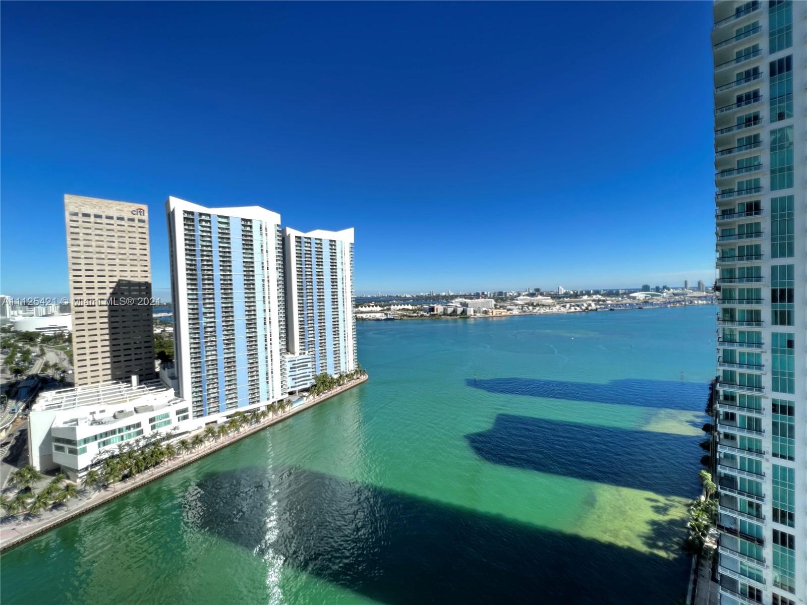 Great Views to bay, city and Port if Miami from every room in this 3/2.5 split floor plan furnished unit. wood throughout. Top of the-of-the line Miele appliances, wine cooler & granite countertops. Marble baths, jacuzzi tub & separate shower. Spectacular Zen-like lobby, state of the art gym, spa, infinity edge pool, racquetball, tennis, sauna, security and valet. All on a beautiful private island just minutes from Downtown Miami, Miami Beach, the airport and Coral Gables