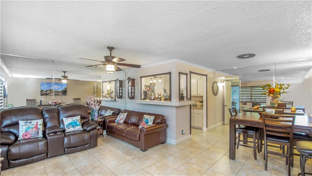 Beautifully updated & spacious 1 bed 1.5 bath in New Hampton of Century Village. Open living area greets you upon entering w/ neutral colors, crown molding, 14" ceramic tiles throughout & modern baseboards! The custom kitchen boasts granite counters with pass through, modern style cabinets & new SS appliances! Stunning master bedroom features wall to wall closet, large screen enclosed patio and modern ensuite! No details sparred as home boasts AC and mini split less than 2 years old, New Zebra 2 way blinds & accordion shutters! Live the 24/7 resort life! +55 Community with club house, movie theatre, secure guard gated entry, fitness centers, spa, multiple swimming pools, bus transportation, billiards, tennis, pharmacy, place of worship, café, golf & more! OK to lease 1st year! No Elevator