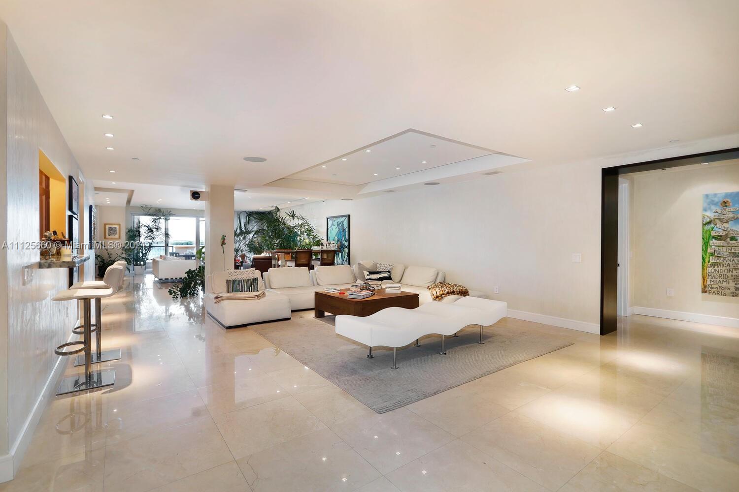 Fully renovated 3 bedroom, 4.5 bath masterpiece has a modern open floor plan with stunning views of the Miami skyline and Biscayne Bay. This pristine 3rd floor unit has clean lines in a modern Italian style, with marble and wood floors throughout, Venetian stucco and hand plastered walls, recessed lighting & ceilings, and top of the line kitchen w/ Gaggenau and Subzero appliances. Master suite boasts a stunning bathroom and abundant walk-in closet with Magic City views. Two en-suite guest bedrooms share a terrace overlooking golf course and Government Cut. This entertainer's dream comes with a full service onyx bar, complete with Sub-Zero wine fridge, ice maker, mini-fridge and beer tap. Couple this condo with the 5-star Fisher Island amenities and this is truly the best of island living.