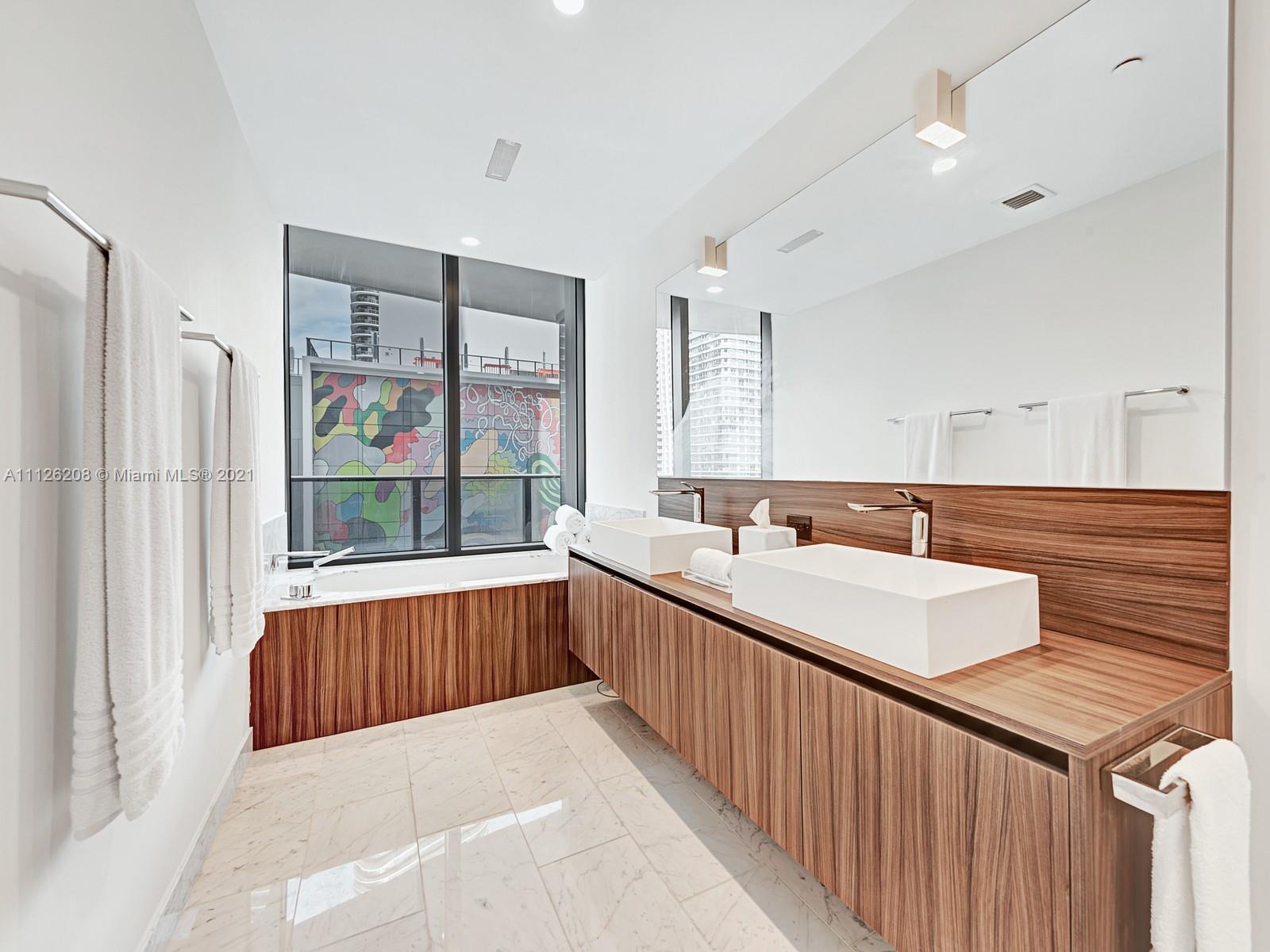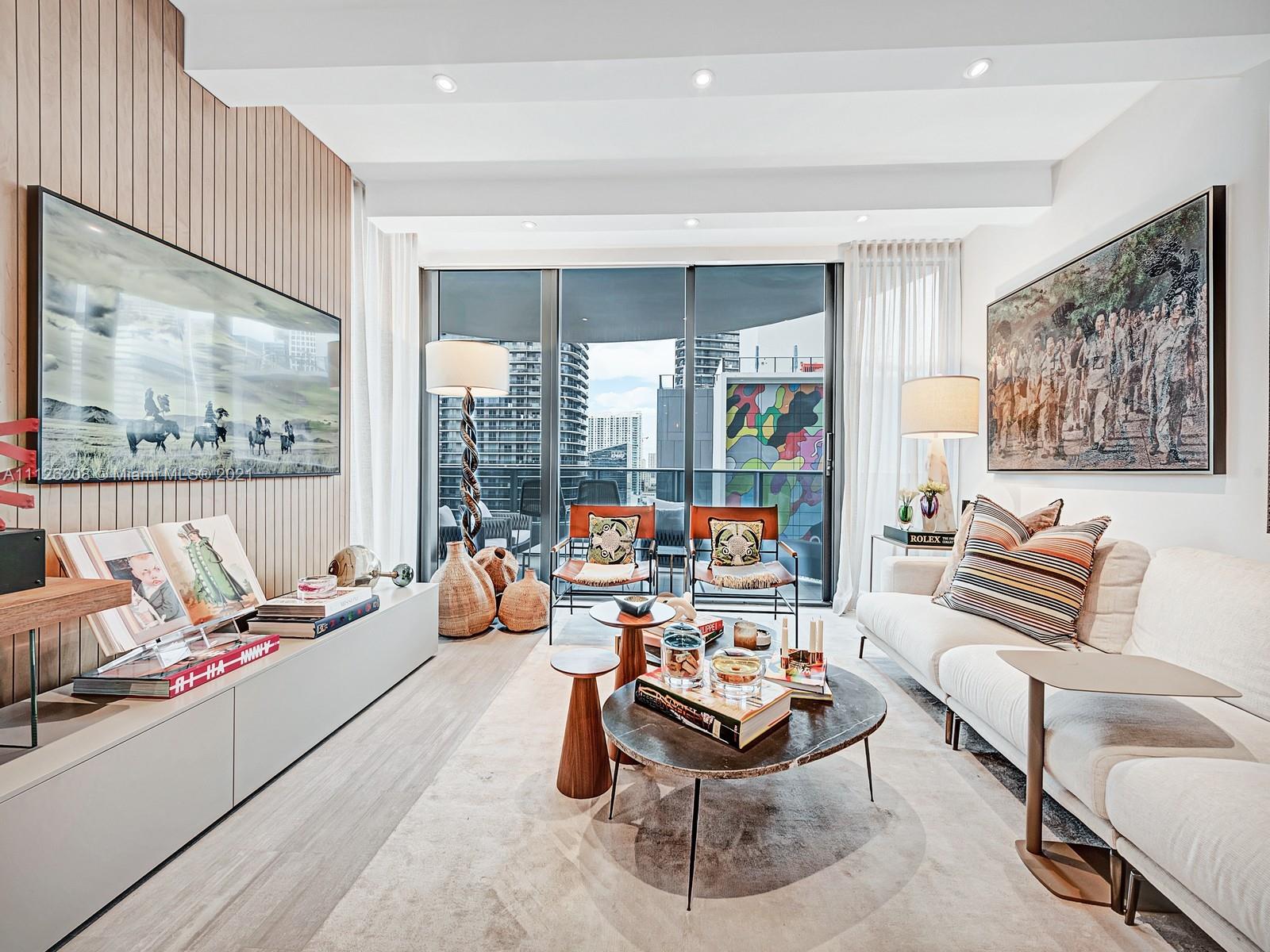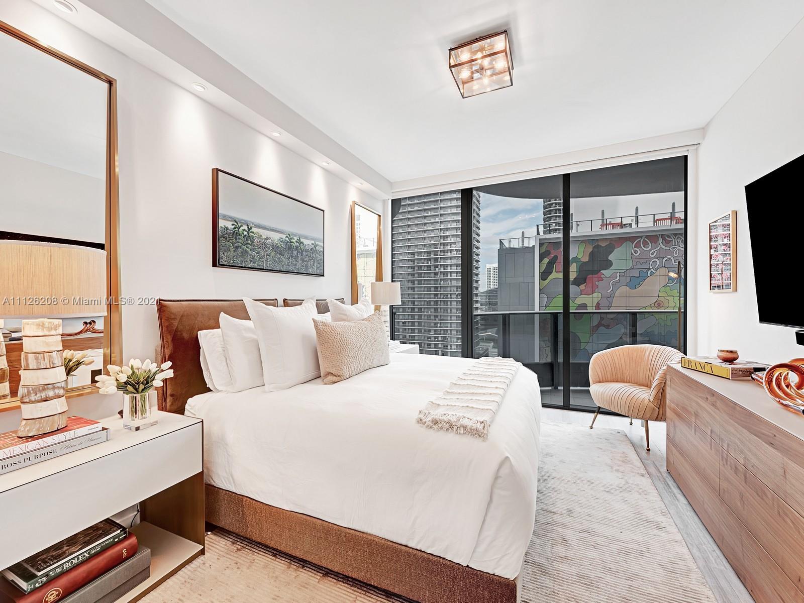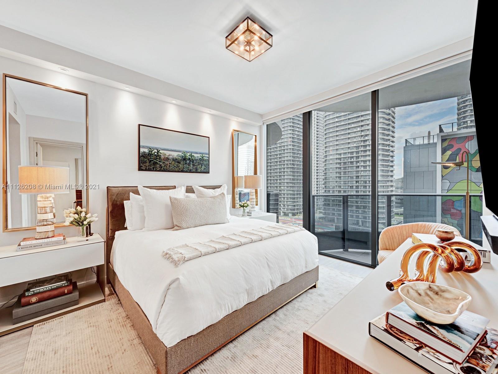 Spectacular brand new upgraded designer unit at the iconic Brickell Flatiron. This corner unit features, 3 BD|2.5 BA, built in closets, electric blackouts & shades, new Lutron lighting system, speakers throughout, top of the line Miele appliances, Nest system thermostat, Italian doors, 9-foot ceiling heights, wrap around balcony w/amazing views, premium flooring & much more! Live & play in this luxury building that offers some of the best amenities in the city: Sky club rooftop at the 64th floor offering sky Pool w/360-degree views of Miami & Biscayne Bay, fitness center w/the best views of the city, & Wellness Center & Spa. Flatiron Club at 18th & 17th floors offering a private movie theater, outdoor lap pool, children's playroom, social lounge room, billiards room, & concierge service.