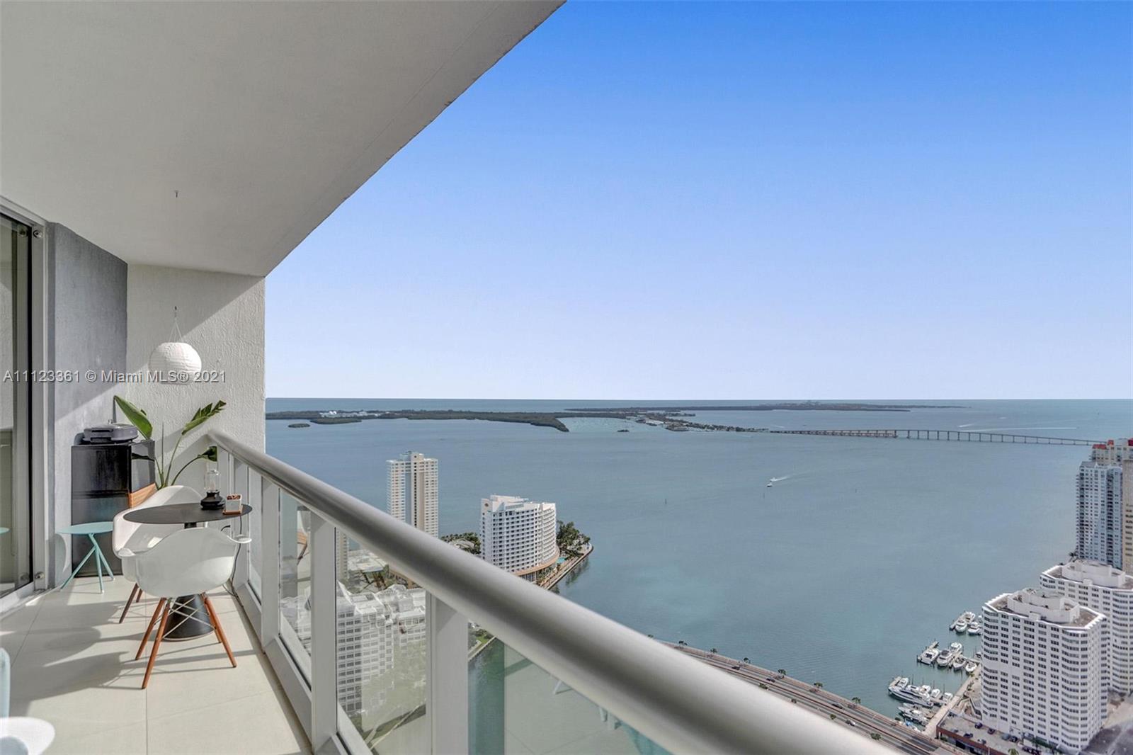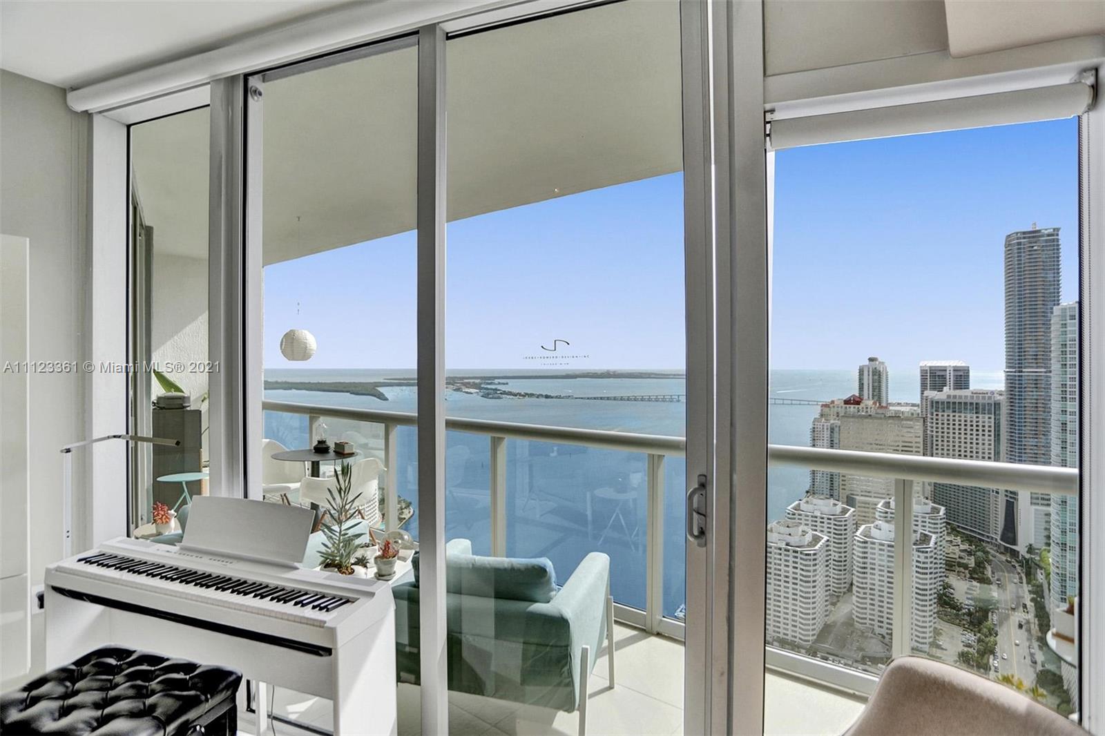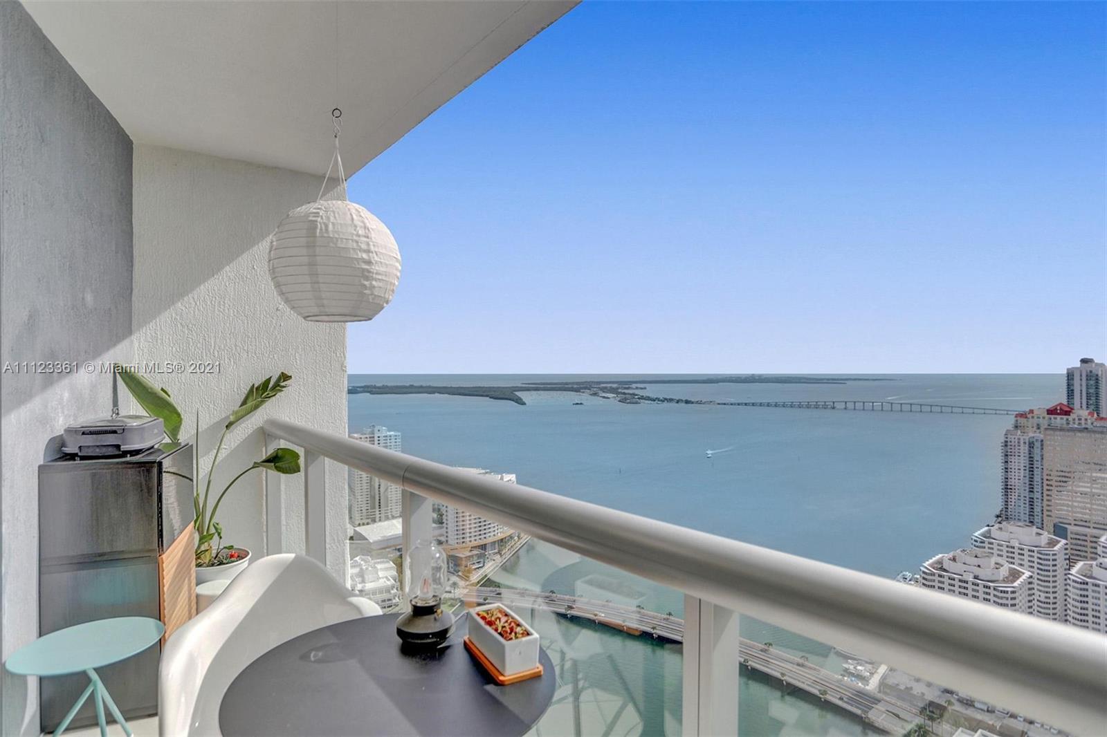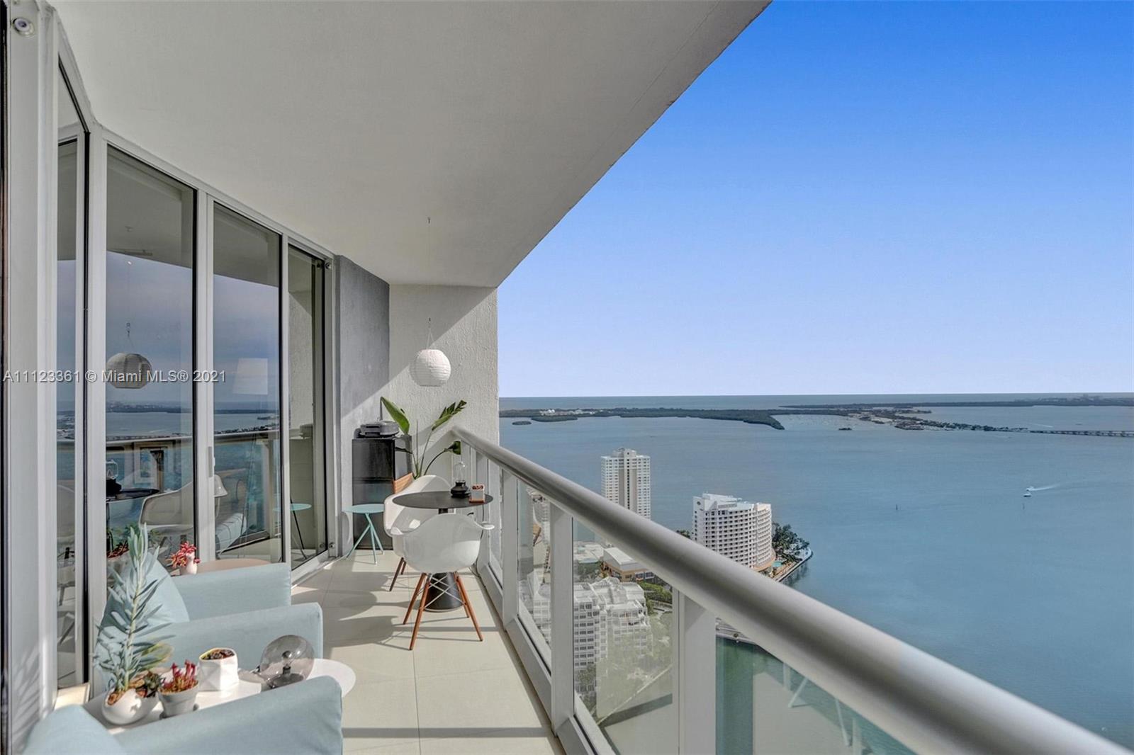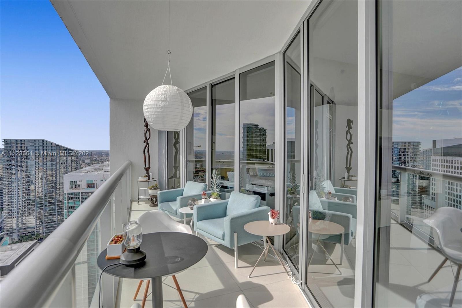 Beautifully designed and professionally decorated! There is no other unit like it! This residence offers incredible high floor bay and magical city views along with amazing finishes and tech automation! Features include beautiful 24X24 interior white glossy porcelain floors -flat finish on the balcony. Custom media built-ins with storage, open kitchen with high-end appliances, Lutron controlled light switches, track lighting and dining room light fixture by tech lighting, nest thermostat, built-in wall speakers, built-in ethanol fireplace, wireless outdoor Sonos speaker, led light strip on balcony. Bedroom has walk-in closet with custom built-ins, en-suite bathroom with double sinks and mirrors. 2 TV’s and 2 DVD’s also included. Live at one of the most desirable addresses in Miami.