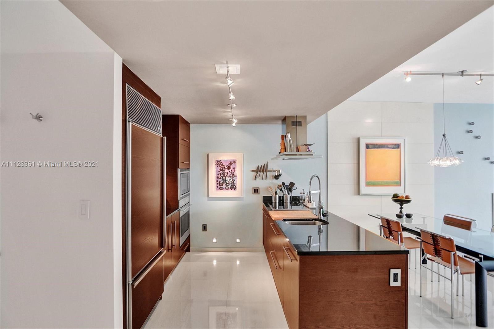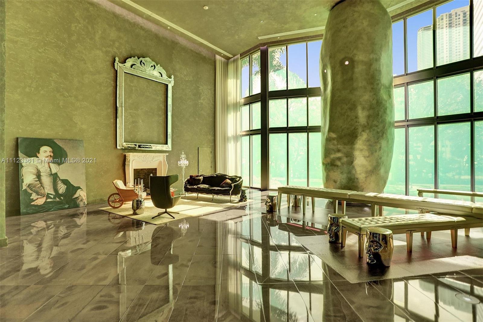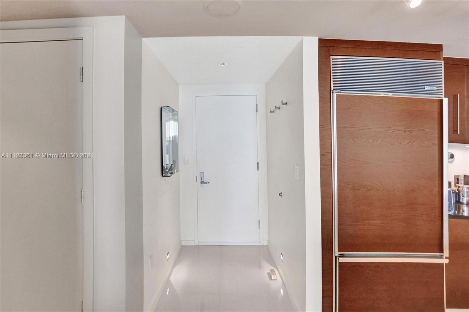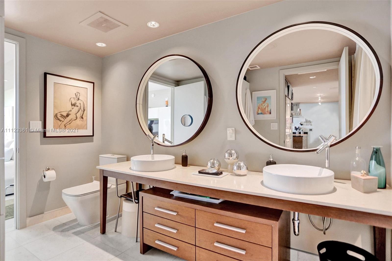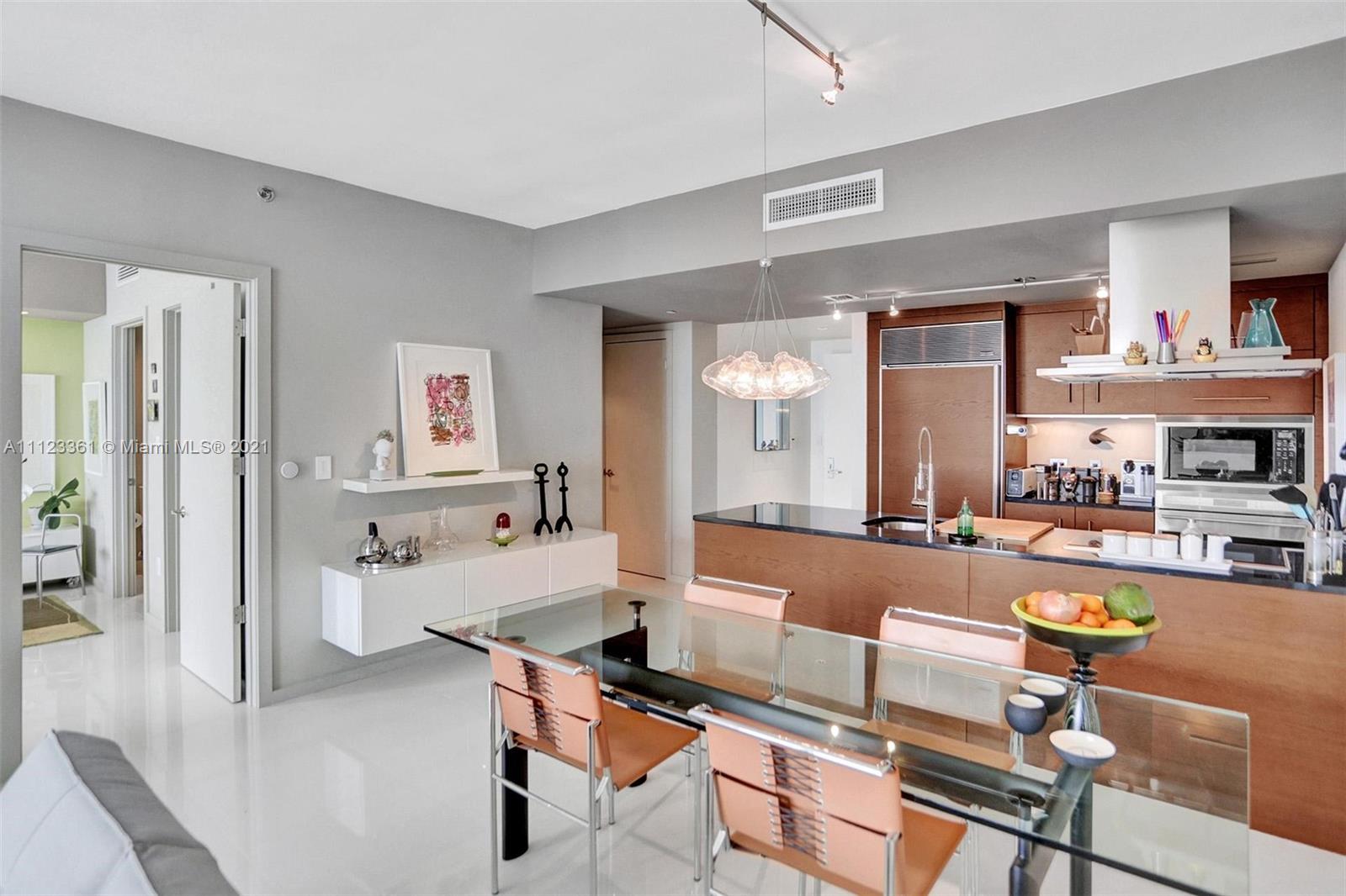 Beautifully designed and professionally decorated! There is no other unit like it! This residence offers incredible high floor bay and magical city views along with amazing finishes and tech automation! Features include beautiful 24X24 interior white glossy porcelain floors -flat finish on the balcony. Custom media built-ins with storage, open kitchen with high-end appliances, Lutron controlled light switches, track lighting and dining room light fixture by tech lighting, nest thermostat, built-in wall speakers, built-in ethanol fireplace, wireless outdoor Sonos speaker, led light strip on balcony. Bedroom has walk-in closet with custom built-ins, en-suite bathroom with double sinks and mirrors. 2 TV’s and 2 DVD’s also included. Live at one of the most desirable addresses in Miami.