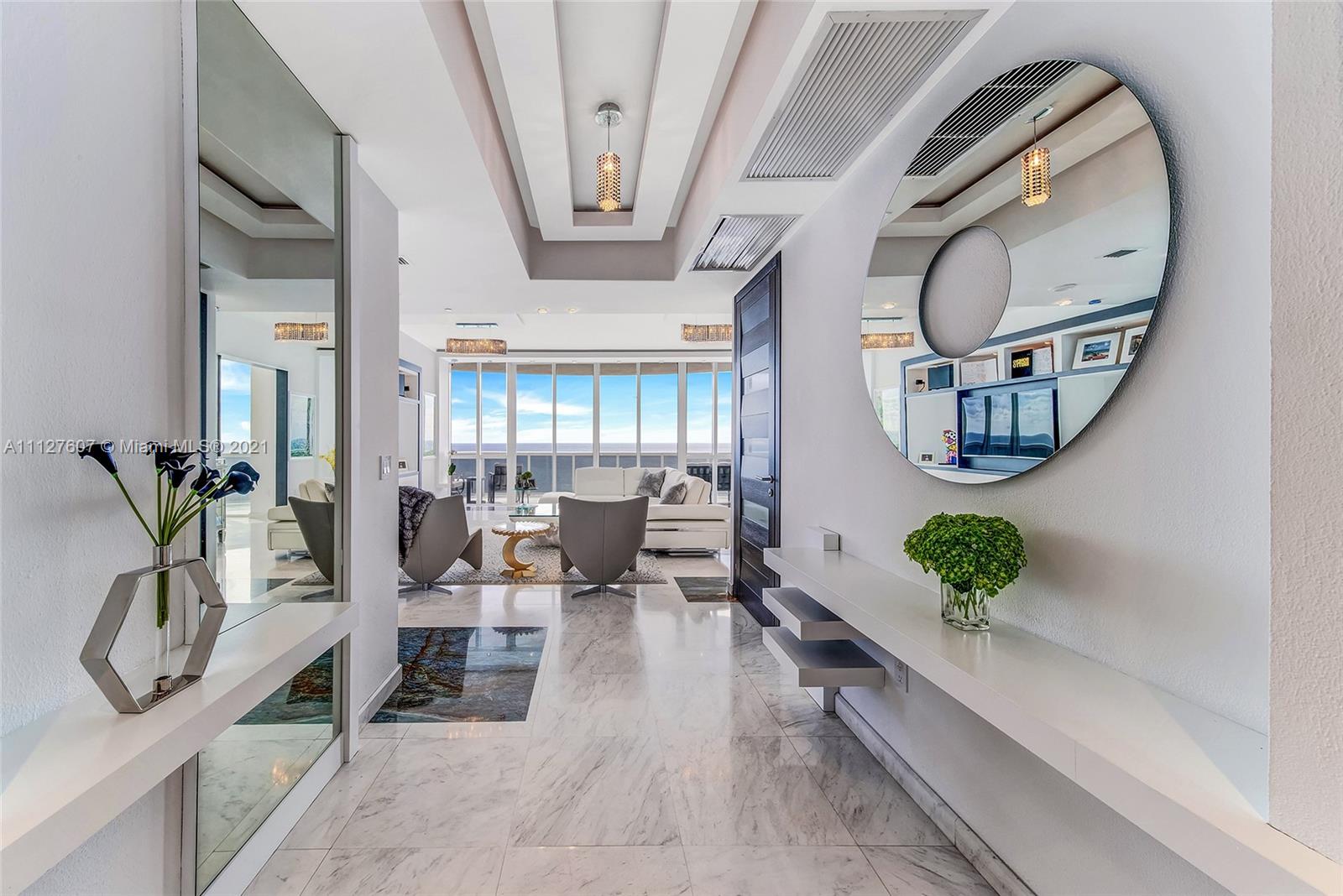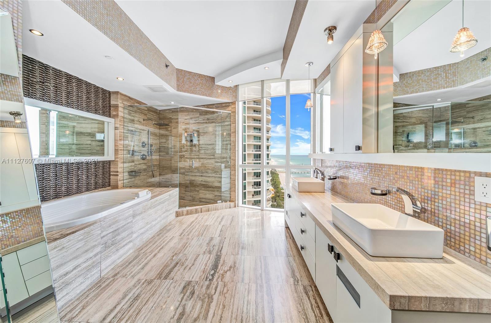 VIEWS, VIEWS, VIEWS…Welcome to the best line in all 3 towers. This Turnkey 3bed/3.5bath includes BEACHFRONT CABANA ($250K VALUE) with unobstructed Water Views from EVERY window! Featuring private elevator foyer, wraparound balcony, 11ft Ceilings, floor-to-ceiling impact windows, & Spacious Split Floorplan. Expansive Master Suite features breathtaking views, His & Hers dressing rooms, grand master bath w/ walk-in shower & oversized soaking tub, 2 AC zones, every bedroom boasts its own bath, very sizable laundry room + extra storage room, RARE 2 PARKING SPOTS + 2 VALET SPOTS. Feel like you're living in a resort enjoying 5 Star amenities like private on site restaurant, beach-side service, 2 pools, fitness center, Spa, & concierge. All just minutes from Bal Harbour, Aventura, & Miami Beach