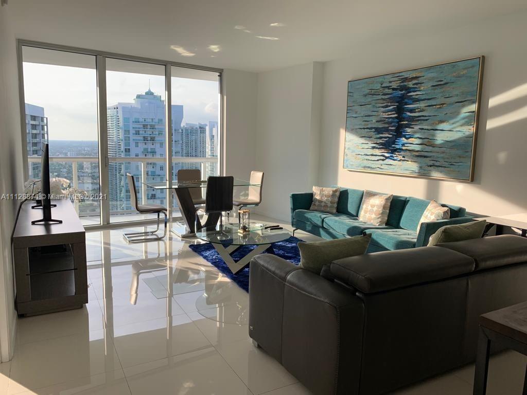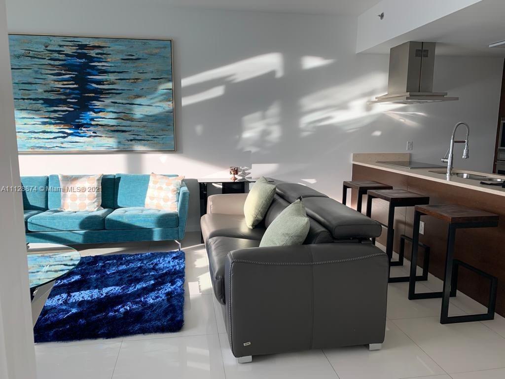 Elegant and lovely Fully Furnished 1 Bed/1 Bath condo on 39th Floor with balcony overlooking the River and City. Porcelain floors. Sub-zero/ wolf kitchen appliances package. European kitchen, with city and river views, state of art spa and gym, restaurants, infinity edge pools, billboard room, party room, concierge, valet and more. Short term rentals allowed