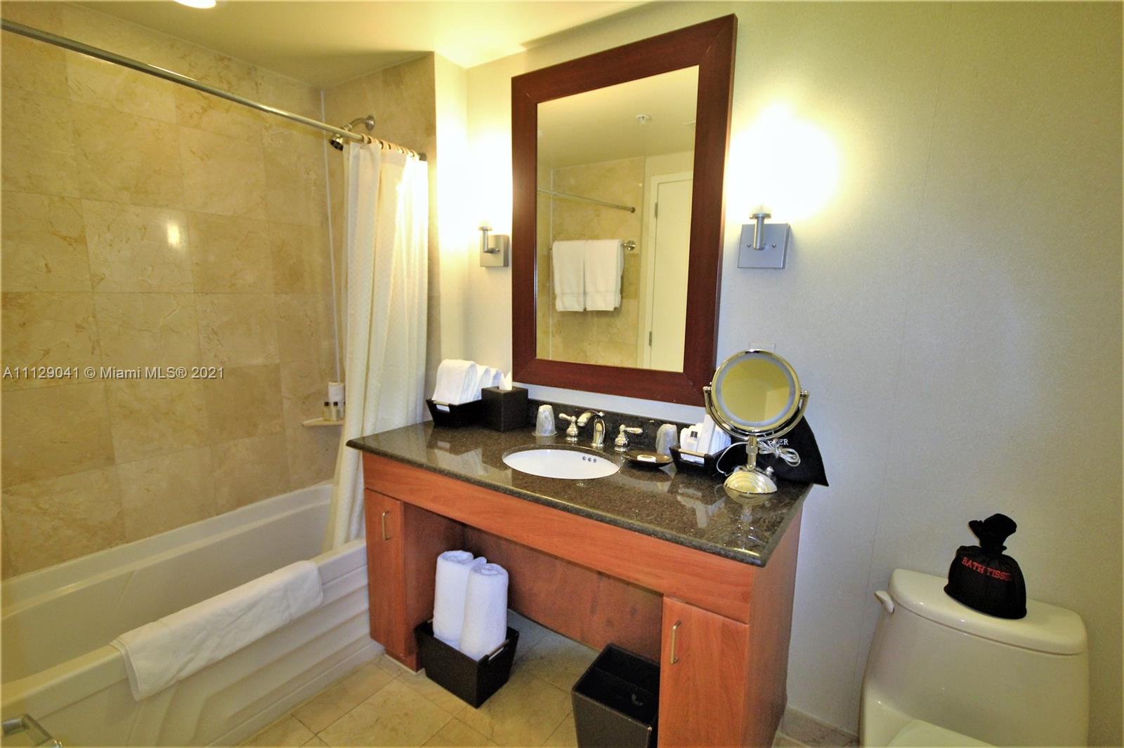 Competitively priced studio suite in this luxurious ocean front condo hotel resort with pool and beach service with chairs, umbrellas, towels, food and drink service and wave runners, 4 restaurants including beach front dining, full service spa, salon, tennis, state of the art fitness center, 2 pools, Kid Planet, child daycare and more. This gorgeous and bright semi corner unit with lots of glass has a gorgeous unobstructed south west view and partial ocean view, is fully furnished and equipped to the hotel standard and is on the hotel program. It features an open balcony, kitchenette with granite counter, dining area, large flat screen TV, and a luxurious bath. Don’t miss out on this amazing opportunity.