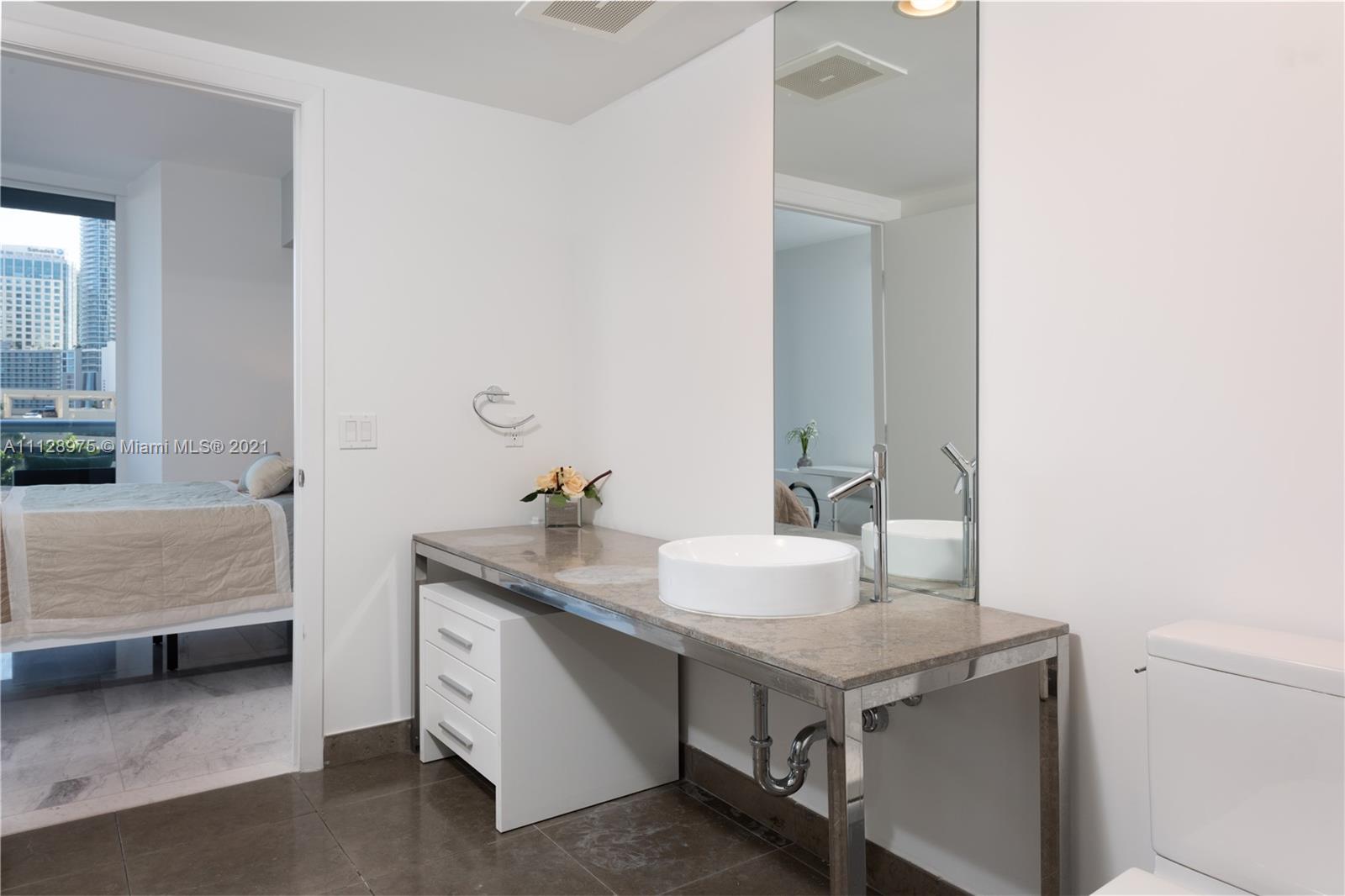 Beautiful water view condo at Icon Brickell. Enjoy modern living at its best! 2BR 2BA + Den condo. Breathtaking views of Biscayne Bay from both bedrooms and living room. Bright and spacious open floor plan has marble floors, European chef's kitchen, new modern furniture and blackout shades for privacy. Oversized balcony has plenty of seating for outdoor entertaining. Located in the heart of Brickell/Downtown, walk to Whole Foods, restaurants and nightlife. Full-service building with world-class amenities including 300ft long infinity lap pool and spa & W hotel on site