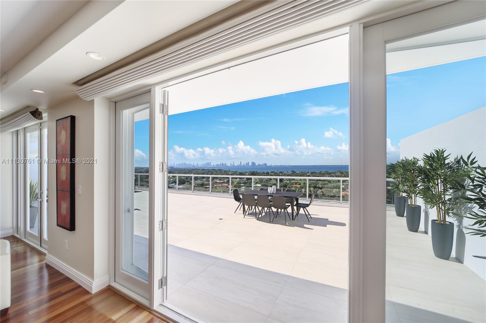 LUXURY 2 BEDROOMS, 2 FULL BATHROOMS PENTHOUSE. 2,100 SQUARE FEET UNDER AIR CONDITIONING & AN ADDITIONAL 1,200 SQUARE FEET OF TERRACE W/ GORGEOUS VIEWS OF THE INTRA-COASTAL, BISCAYNE BAY, LA GORCE GOLF COURSE, & DOWNTOWN MIAMI AND THE SUNSET. AMAZING JACUZZI ON TERRACE. THIS UNIQUE PENTHOUSE INCLUDES A POOL-SIDE CABANA W/FULL BATH. THE RESIDENCE IS FULLY FURNISHED, FEATURING ITALIAN SNAIDERO CHERRY WOOD KITCHEN CABINETRY, MIELE APPLIANCE & CUSTOM MADE FURNITURE. CHERRY WOOD FLOORS. MARBLE BATHROOMS. STEAM ROOM AND JACUZZI IN MASTER BATH.LAUNDRY ROOM. PRIVATE STORAGE ON THE APARTMENT FLOOR. PRIVATE WINE CELLAR. 2 PARKING SPACES ASSIGNED. BUILDING COMPLETELY RENOVATED WITH NEW GYM, POOL AREA, ELEVATORS, LOBBY, HEATED POOL, RESTAURANT, MASSAGE ROOM,.BUILDING HAS PRIVATE MARINA. BOATERS DREAM.