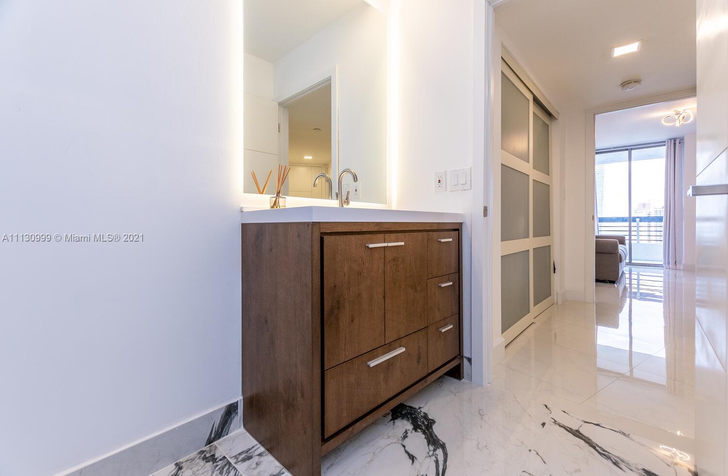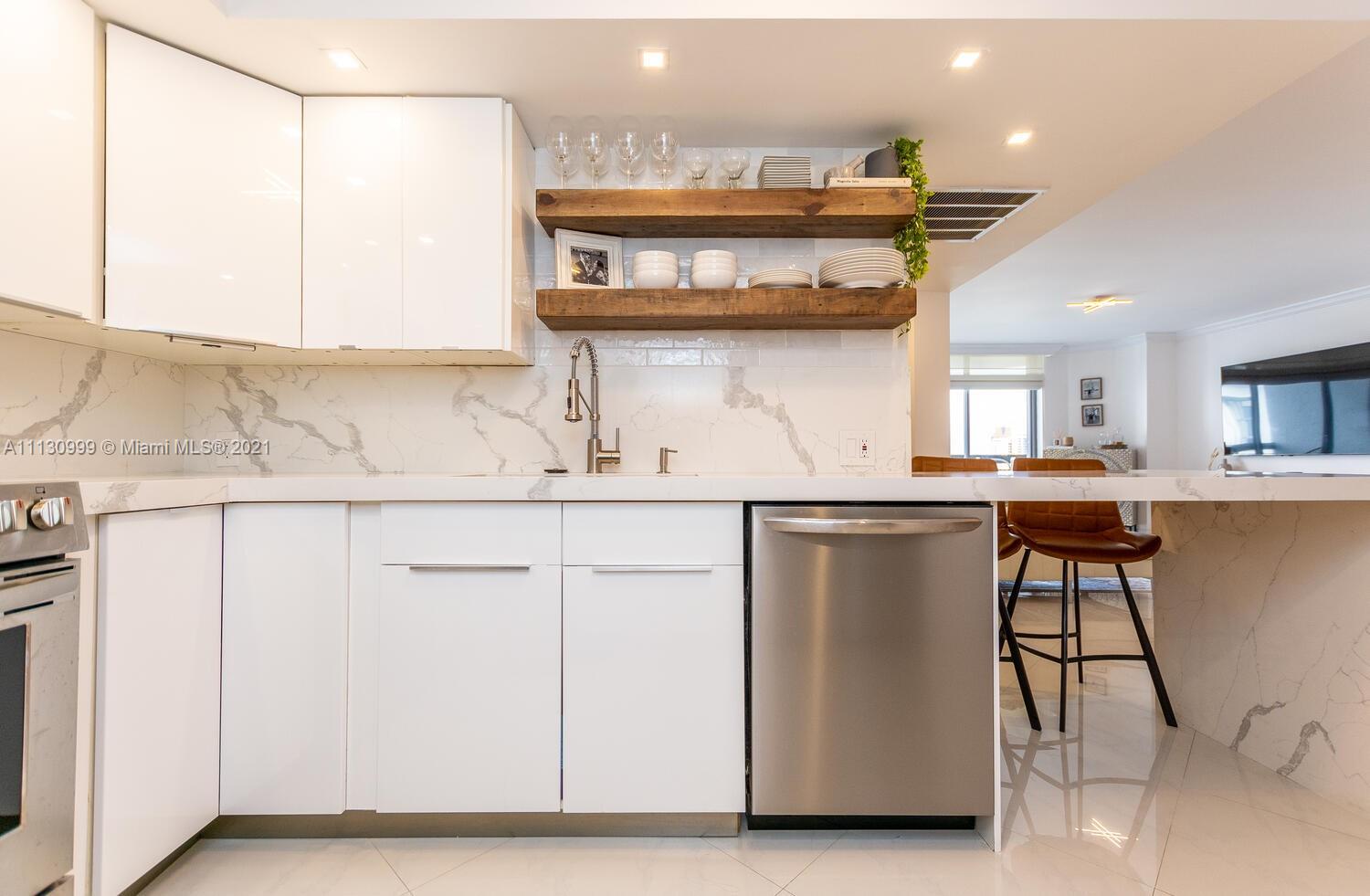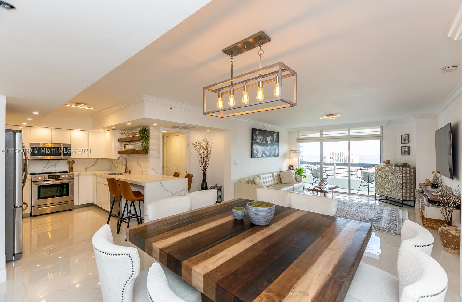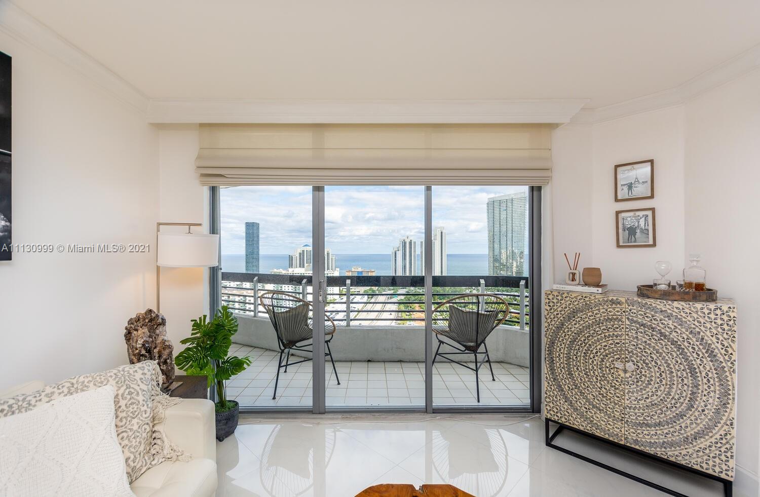 Rare Lower Penthouse with truly stunning direct views of ocean & intracoastal from the moment you enter. Open kitchen with quartz counters and recently purchased appliances (June 2021). Split layout. Resort style bath finishing's renovated top to bottom. Additional walk in closet in master bedroom with custom shelving. All interior doors have been upgraded with custom wood trimmings and accessories. No expense spared. Nothing like it for sale. Mystic 100 offers the most modern lobby renovations and elevators out of all towers. Hurricane shutters installed and maintained. 3 ton AC brand new, installed 2021.